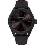 REEBOK spindrop SPEED RF-SDS-G2-PBIB-BR; Warrior black ABS CASE; Metal dial with PAINTED indexes; Warrior black, excellent red dial; Warrior black strap; silicone strap WITH SS buckle; miyoya 2035 QUARTZ movement; 3H; 5ATM; 45mm