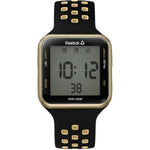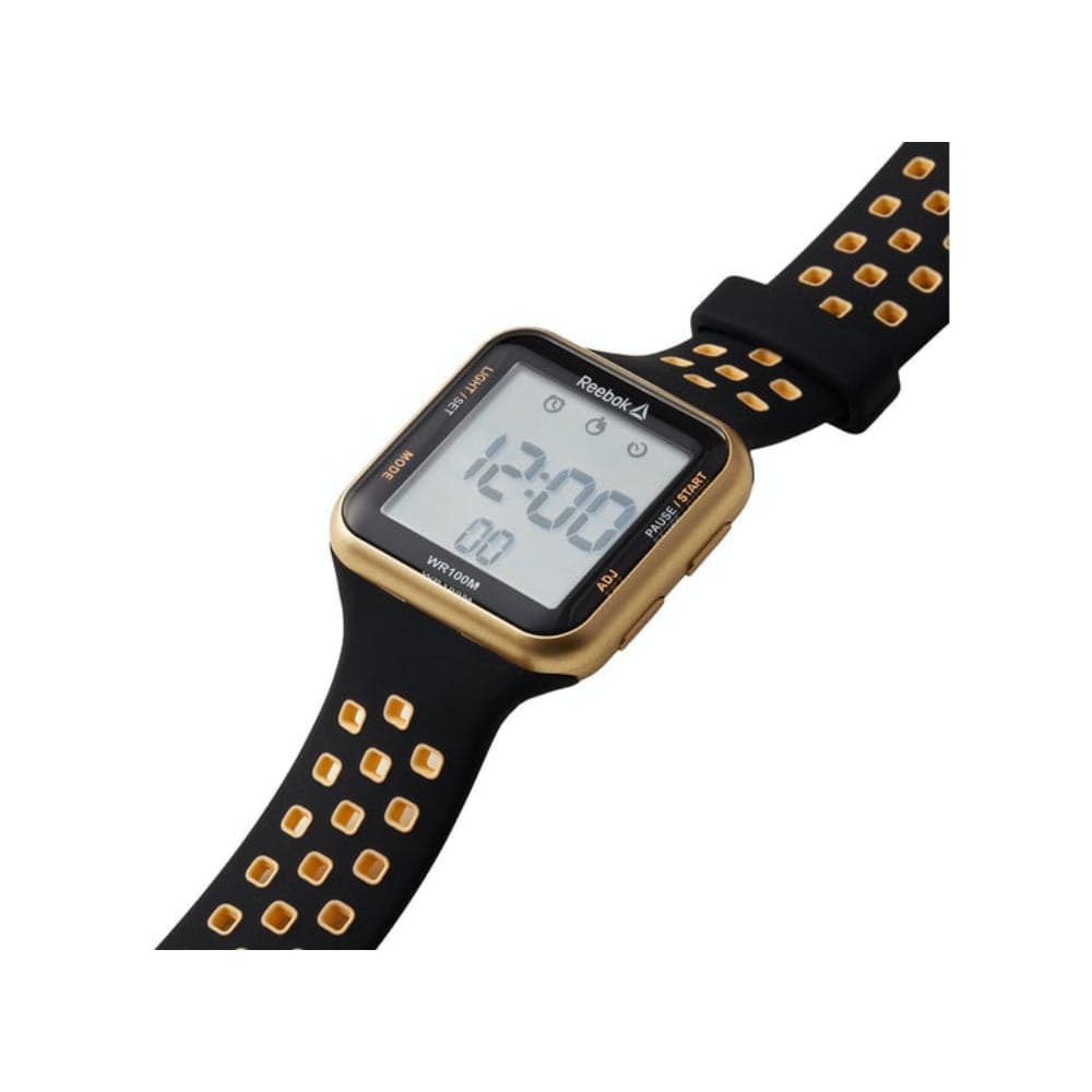DOUBLE-INJECTED SOFT SILICONE STRAP IN WARRIOR BLACK, WITH CONTRASTING GOLD TO THE BACK OF THE STRAP, AND A STAINLESS STEEL BUCKLE.