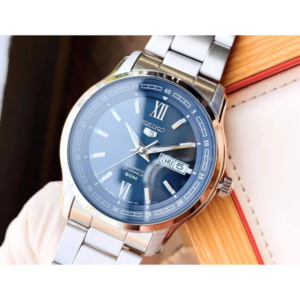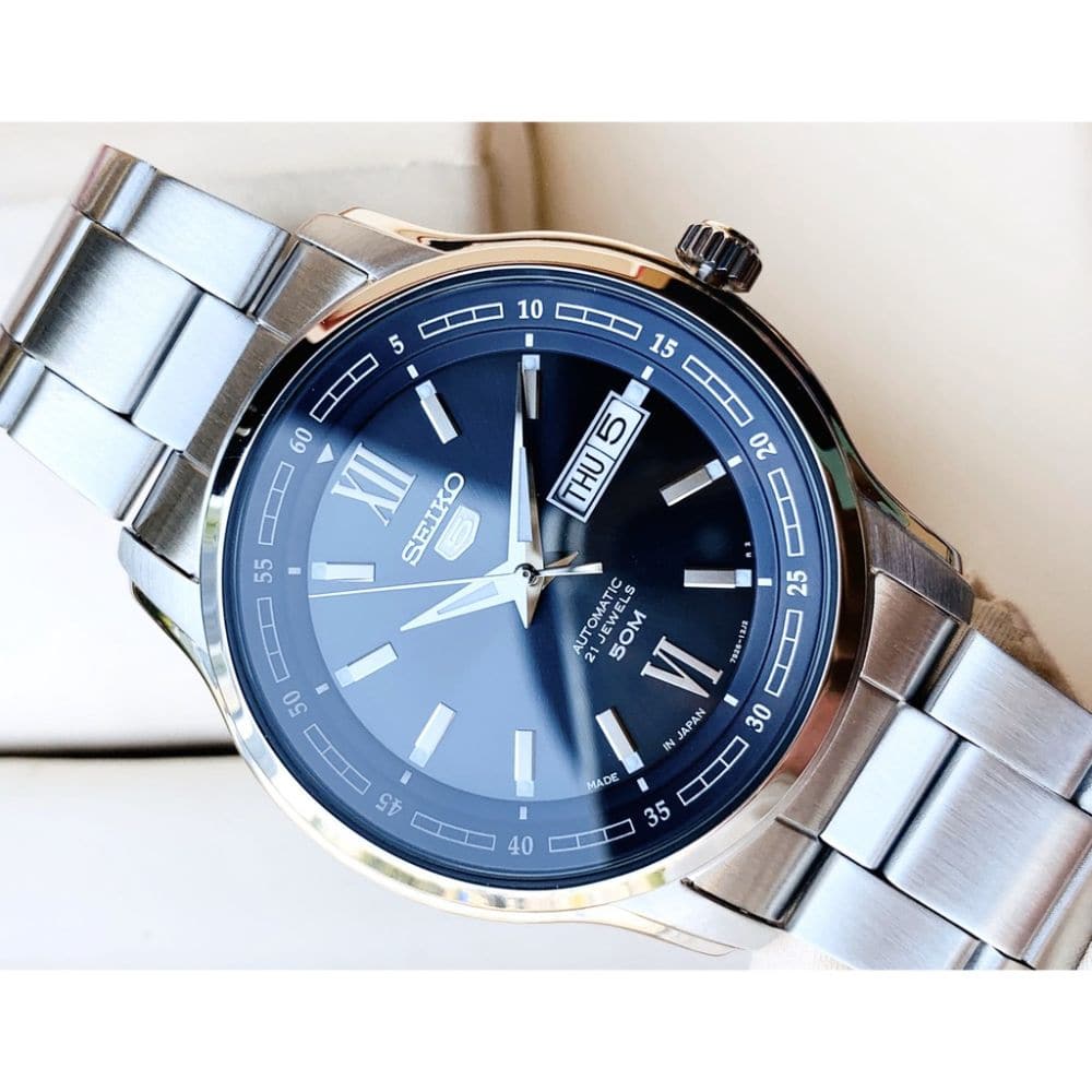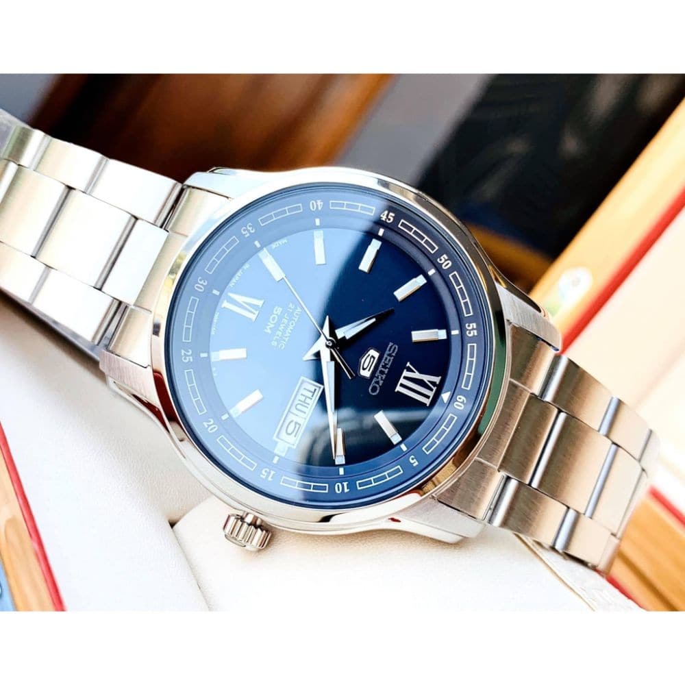 The Seiko, Seiko 5 series features a stainless steel 42mm case, with a fixed bezel, a blue dial and a scratch resistant mineral crystal. The 22mm stainless steel band is fitted with a deployment with push button release clasp. This beautiful wristwatch, powered by a 7S26, Japan automatic movement, supporting: date, day, hour, minute, second functions. This watch has a water resistance of up to 165 feet/50 meters, suitable for short periods of recreational swimming, but not diving or snorkeling. This stylish timepiece is sure to complete any man's collection.