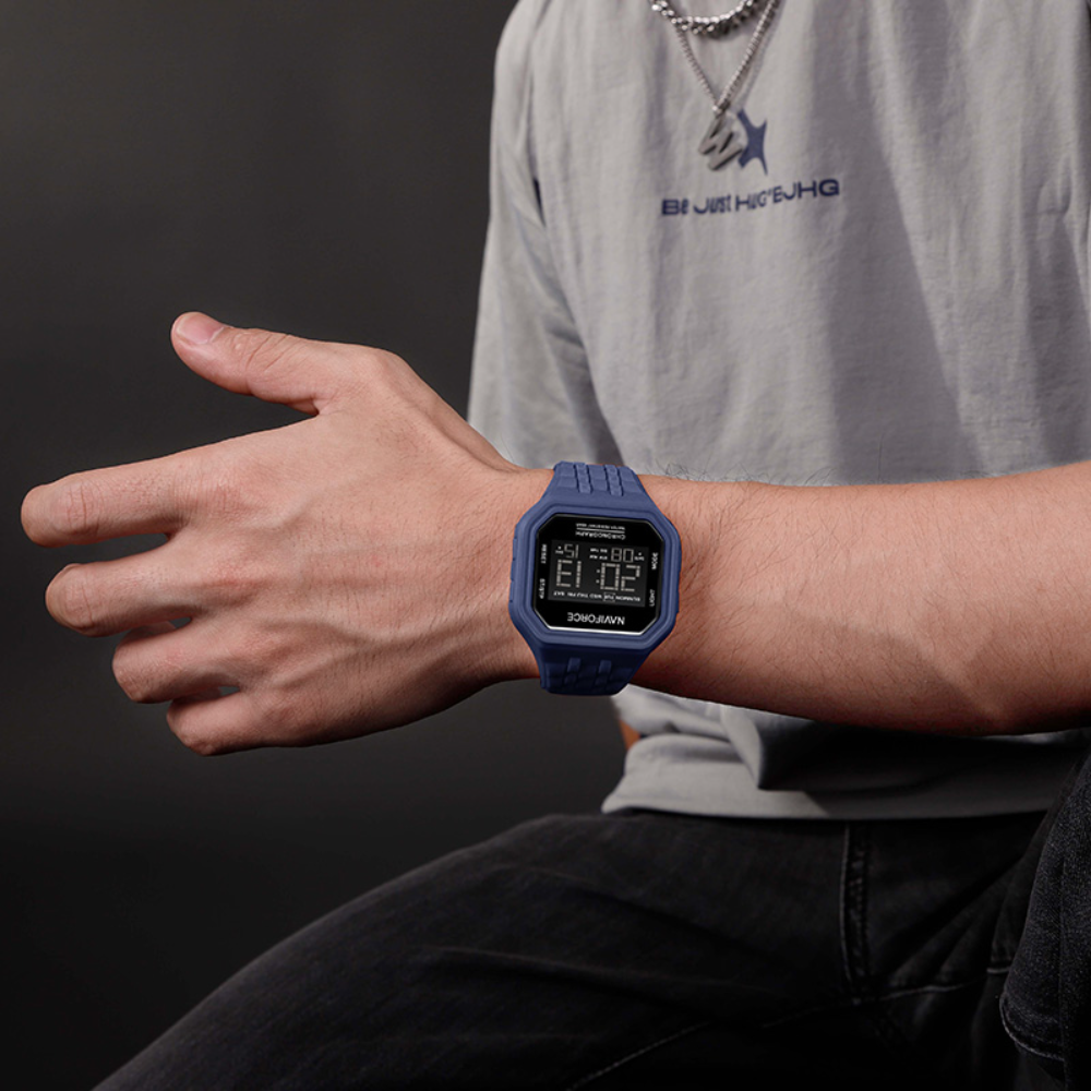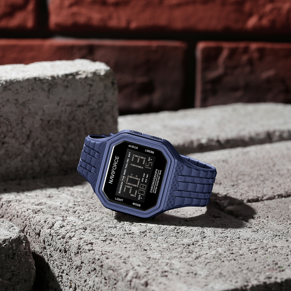The Naviforce NF7116 combines sporty style with practical functionality. Featuring a bold 42mm blue ABS plastic case paired with a comfortable TPU strap, this watch delivers durability for active lifestyles. The HD acrylic crystal protects a digital display with date and day functions, powered by reliable quartz movement. Water-resistant to 5 ATM, it handles everyday splashes and light water activities. Lightweight at just 52g, it won't weigh you down during workouts or daily wear. Backed by a 1-year local and international warranty for peace of mind.