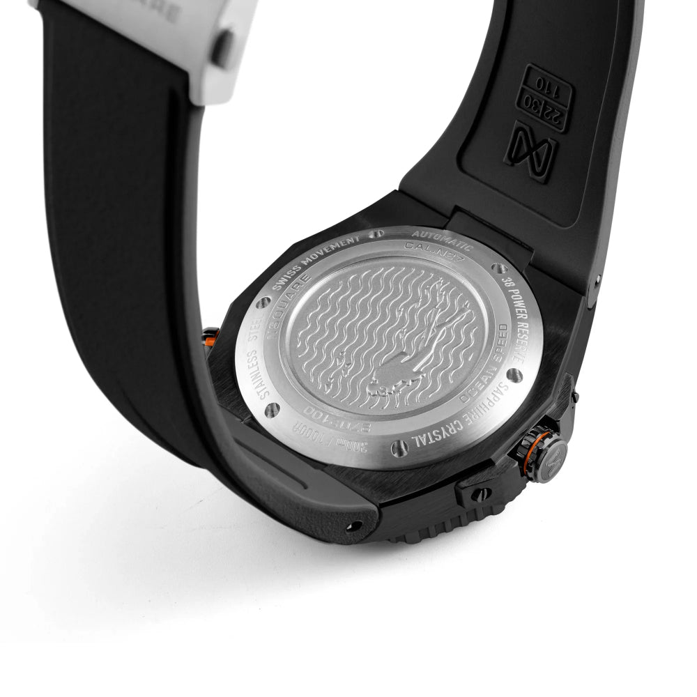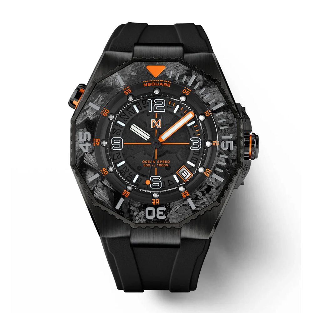 The NSquare Ocean Speed Diver NS27.1 brings Swiss precision to aquatic adventures and everyday exploration. Built with a robust black rubber strap designed to withstand water exposure and demanding conditions, this diver's watch combines technical capability with refined styling. The Ocean Speed collection represents NSquare's commitment to creating timepieces that perform under pressure while maintaining elegant proportions. Whether you're timing laps in the pool or navigating your professional day, the NS27.1 delivers reliable accuracy and durability. Its water-resistant construction and premium materials make it an investment in a watch that truly goes the distance. A trusted companion for those who demand both performance and sophistication.