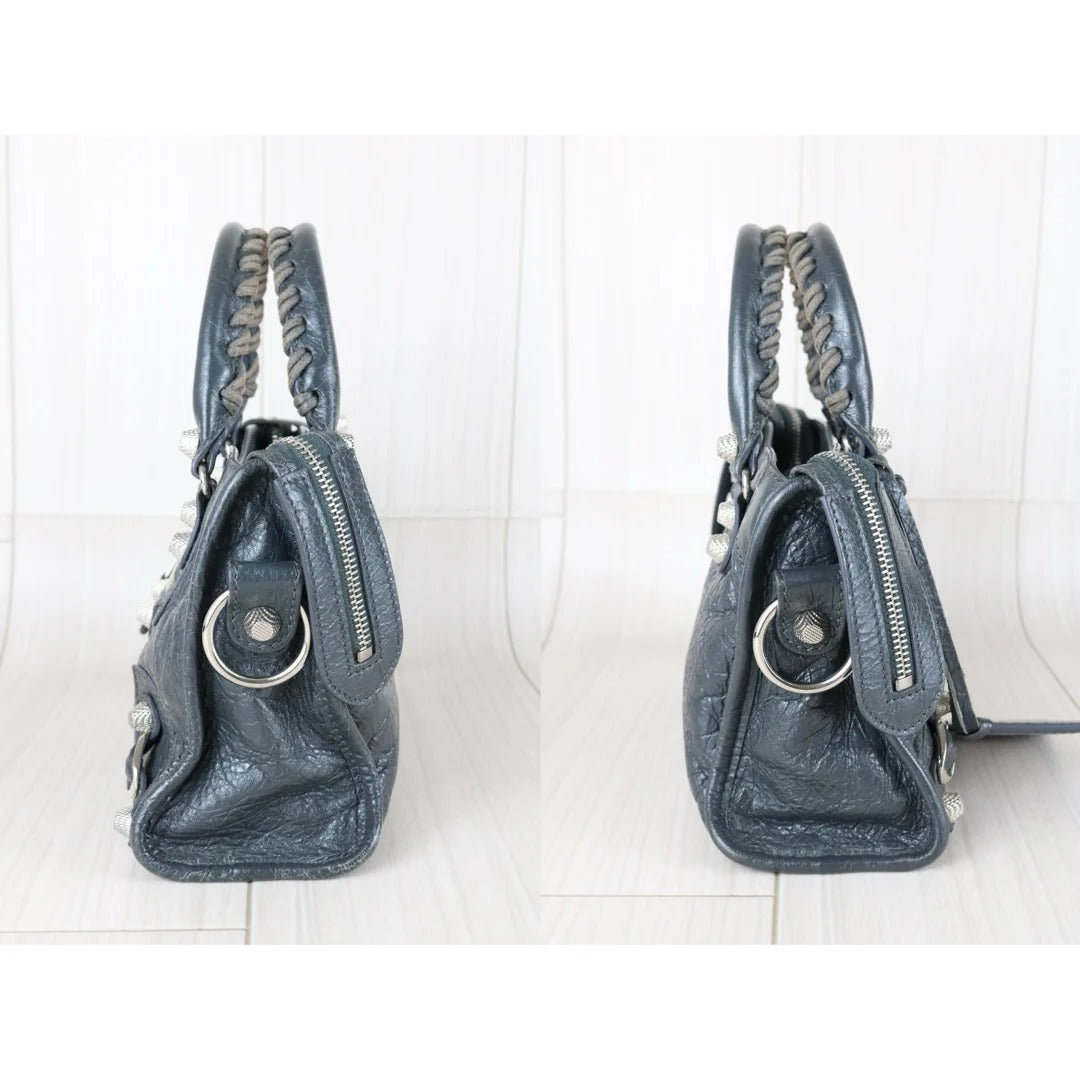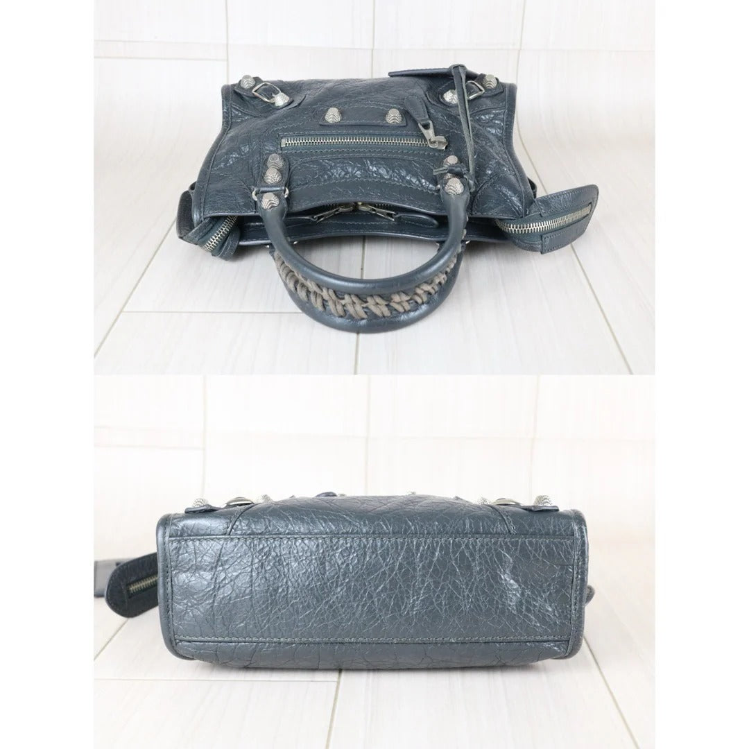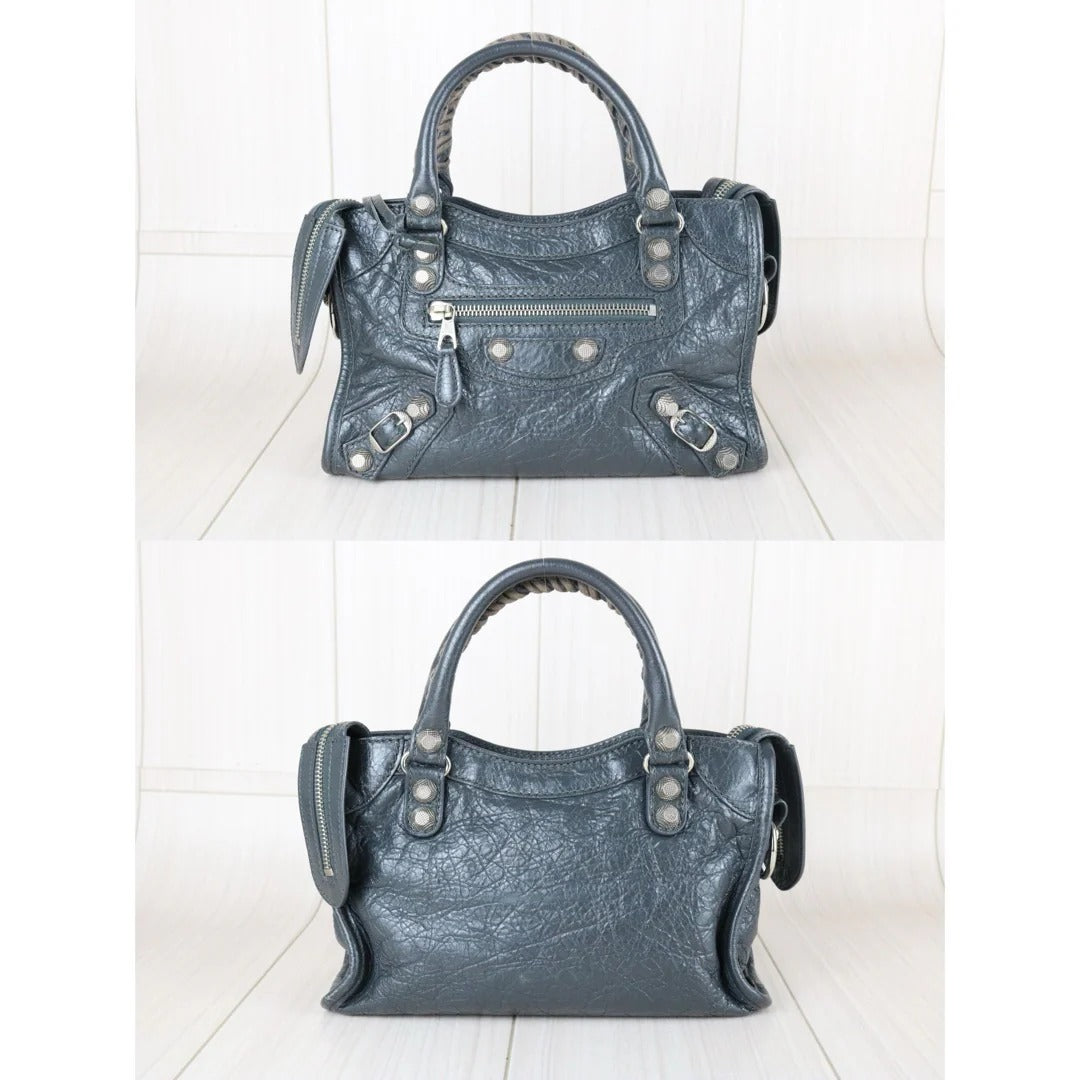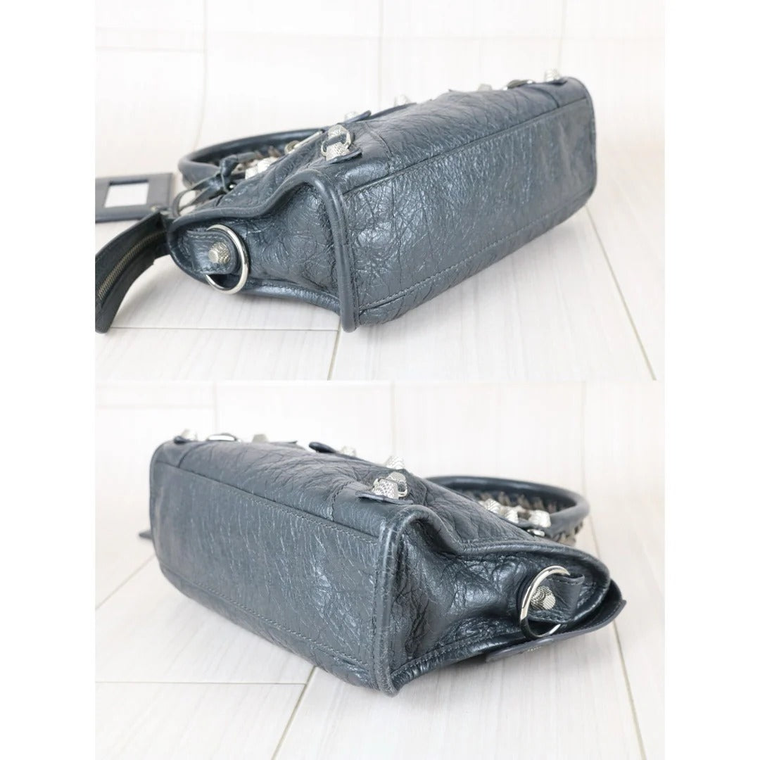 Balenciaga Calf Leather Le City Mini Shoulder Bag Grey