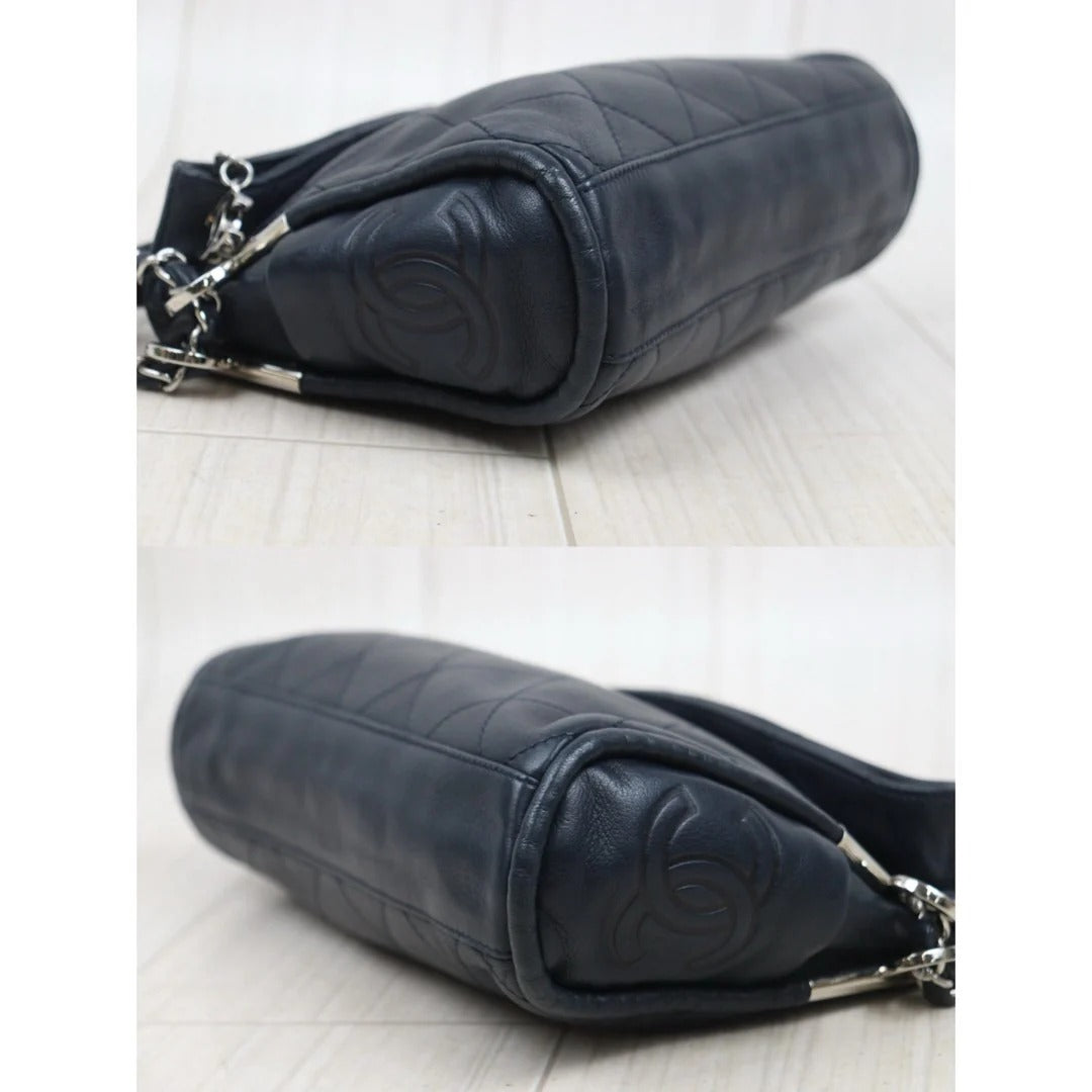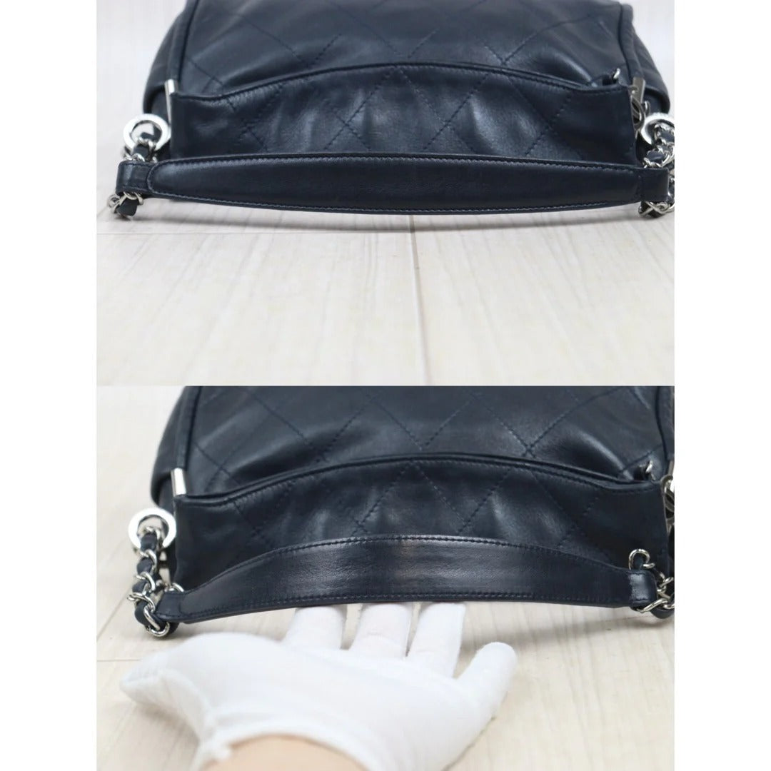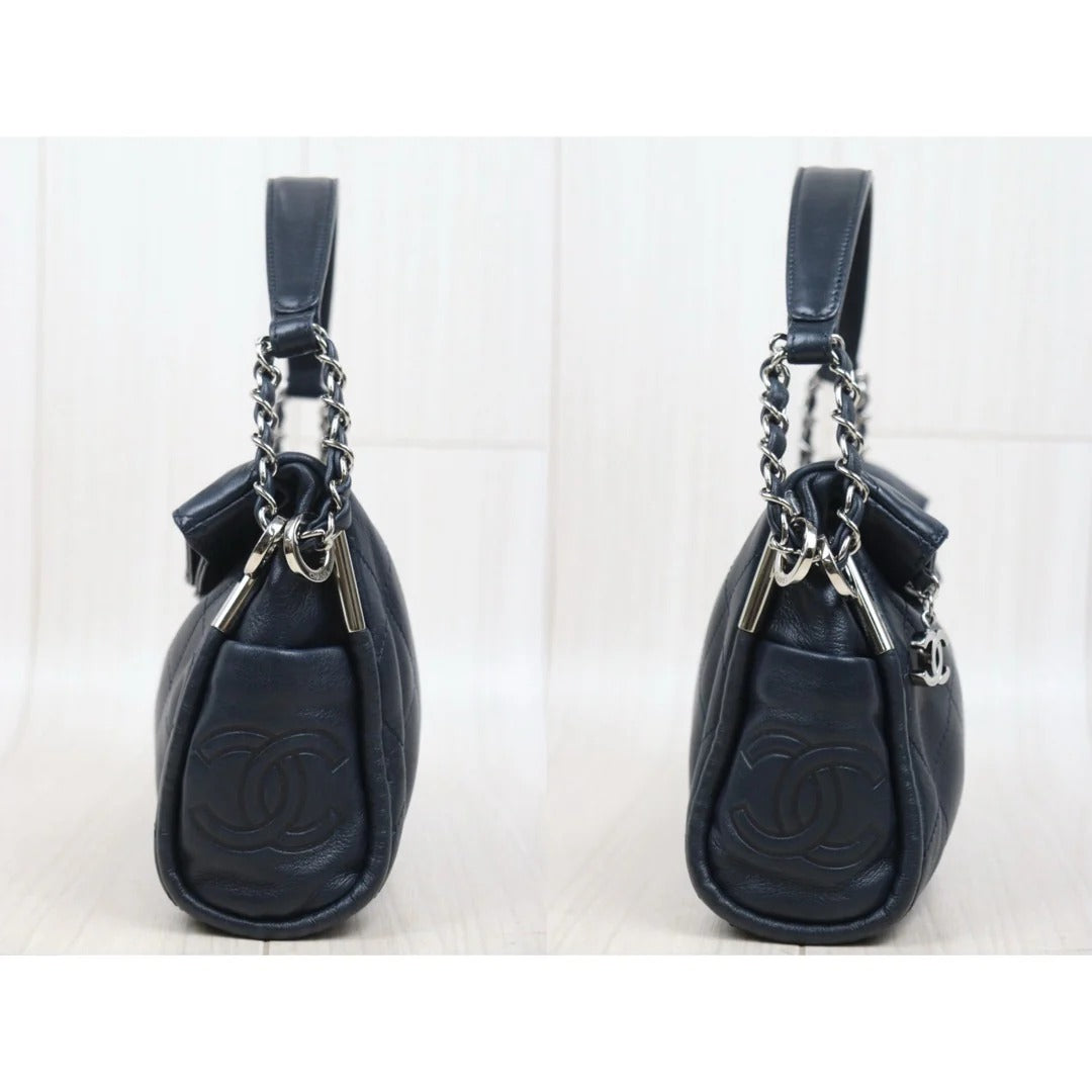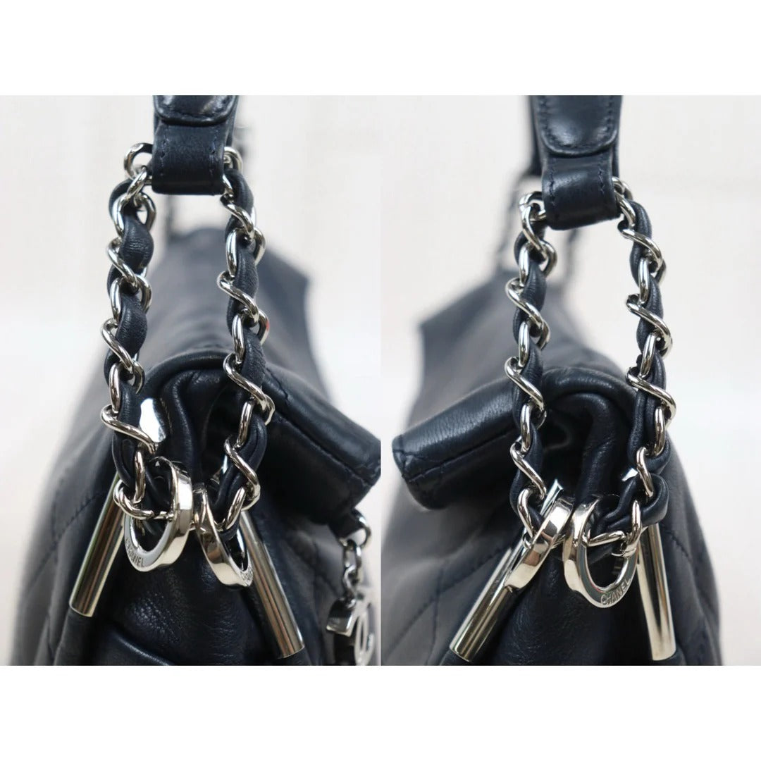 CHANEL Lambskin Matrasse Chain Hobo Handbag Dark Blue (Made in 2008–2009)