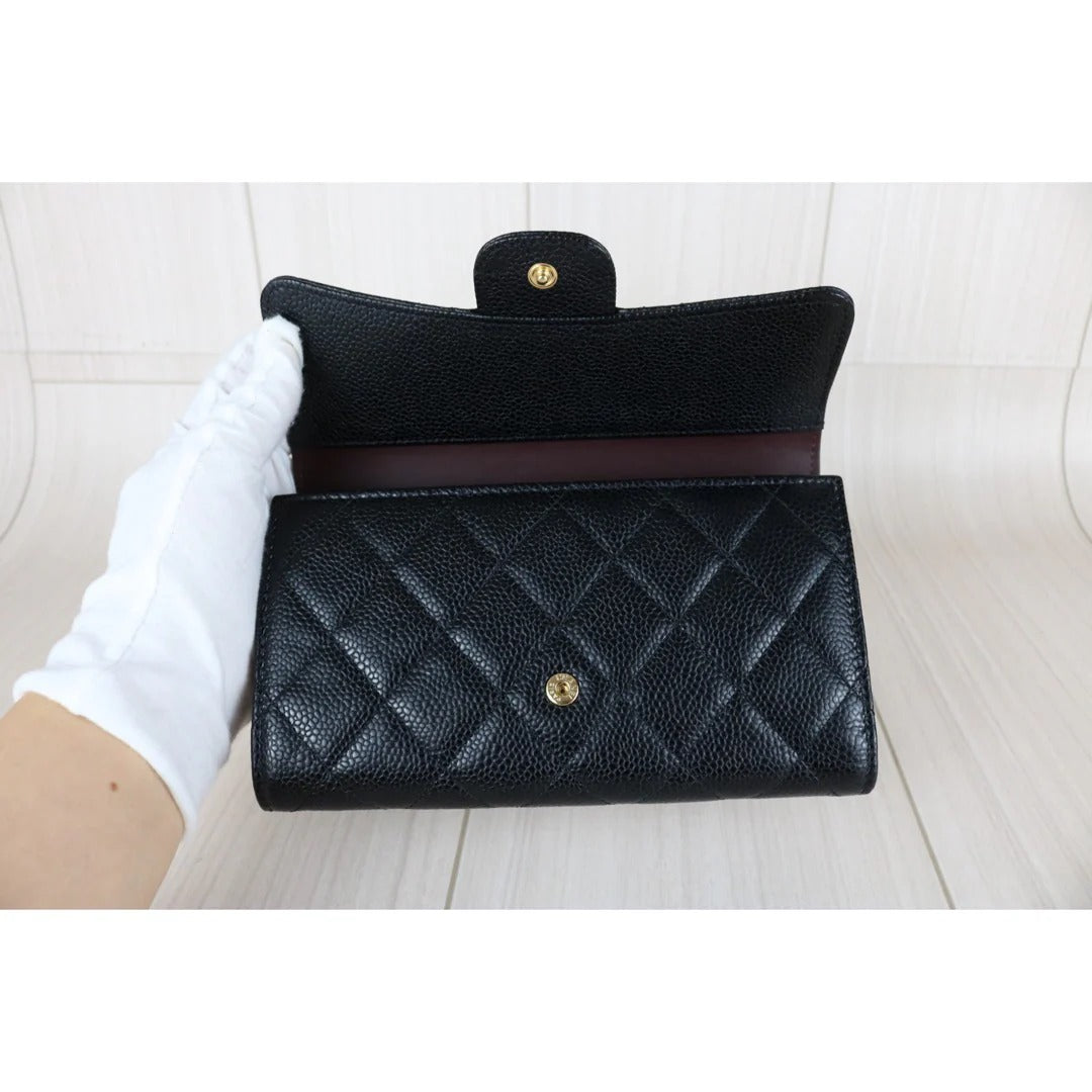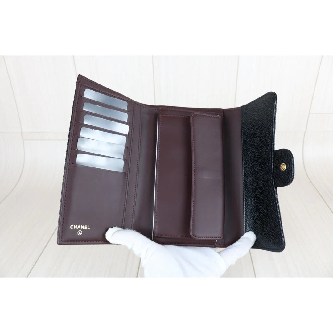 Chanel X25092701 Full Set CHANEL Caviar Skin Black Long Wallet Made In 2014- 2015 (Excellent Condition)