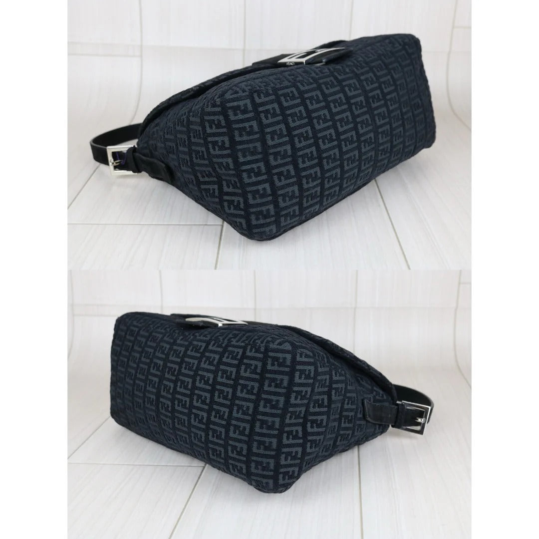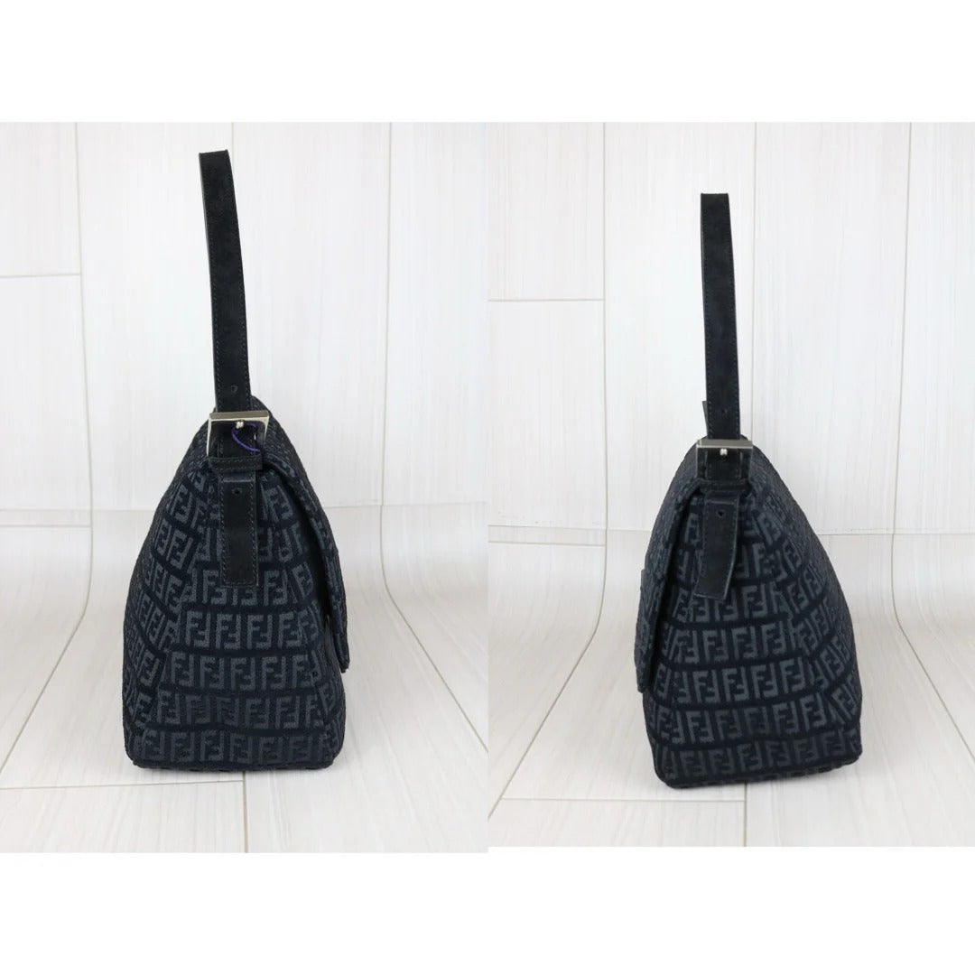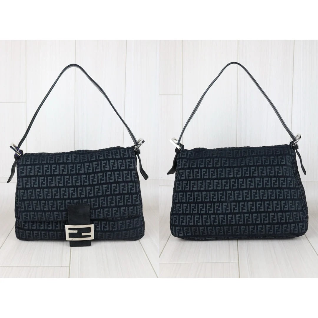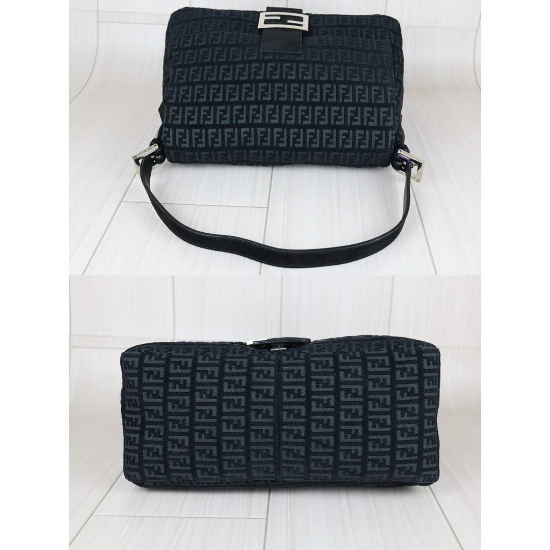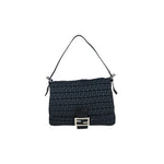 FENDI Zucca Mamma Baguette Velvet Horsehair Shoulder Bag Black