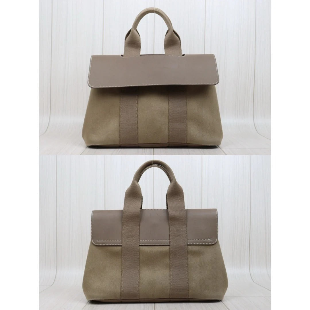 HERMES Valparaiso Canvas Milk Tea Brown HandBag With Pouch PM