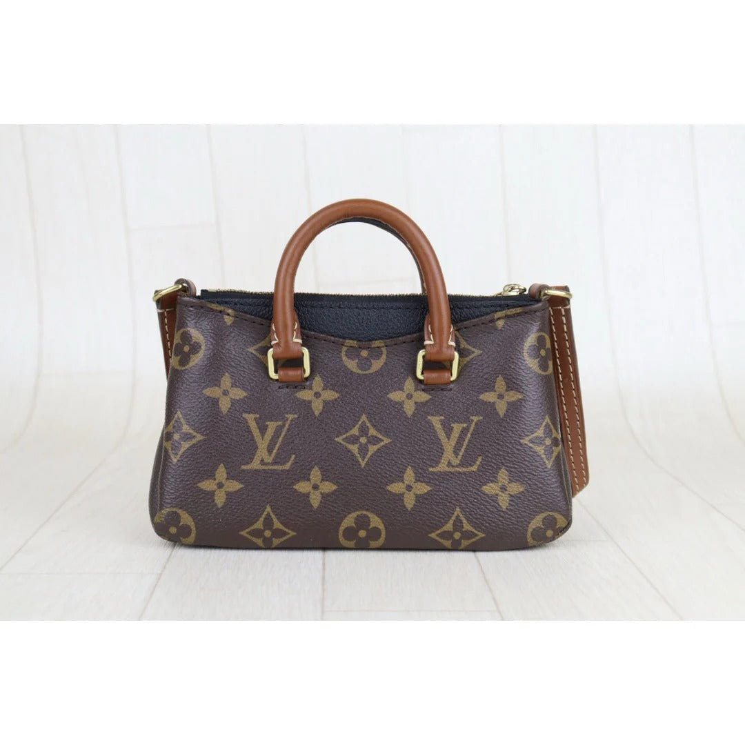 Louis Vuitton Monogram Pallas Nano Handbag with Shoulder Strap Brown
