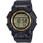 The all-black body, tough as any G-SHOCK, glitters with gold-colored accents and mirrored textures for a look that is totally bold yet utterly cool.