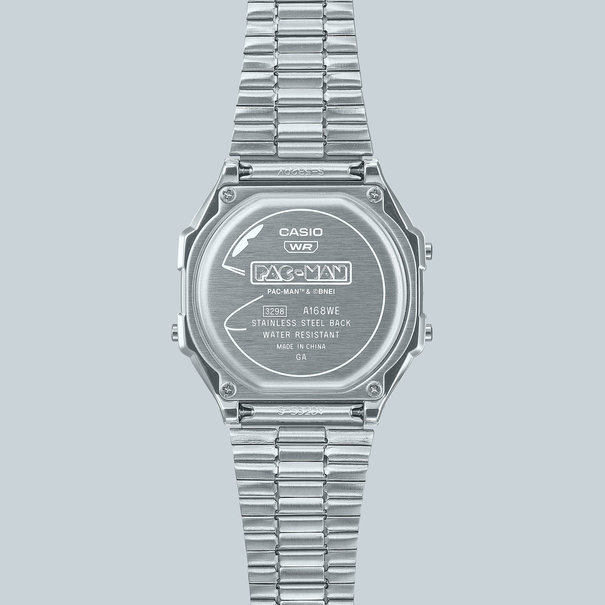 Celebrate nostalgia with the Casio Pac-Man Collaboration Model A168WEPC-7ADR, combining retro gaming vibes with classic digital watch functionality.