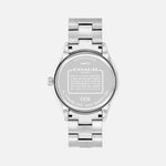 The Coach Brooks Watch combines modern elegance with timeless charm. Its silver sunray dial and sparkling crystal accents on the bezel, markers, and bracelet center links make it a standout accessory. Perfect for both day and evening wear, this sleek timepiece ensures sophistication with every glance.