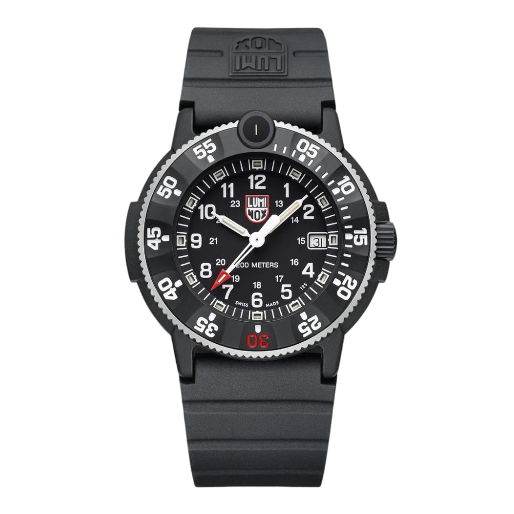 The Luminox Original 3001.H (heritage) watch revisits history with a revamped tribute to the very first Luminox model. Coloured in red, the "30" on the bezel signifies three decades since Luminox's 3000 series watch released in 1994. The second hand, adorned with a bold red arrow tip, dances across a sapphire glass face for increased readability. The improved quality movement of the Swiss quartz ETA movement, and a stainless-steel bezel, embodies the brand's relentless pursuit of high-performance, robust watches.