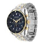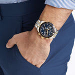 The Movado Heritage Series Calendoplan S Chronograph (3650126) is a classic-meets-modern timepiece that blends sophistication with functionality. Featuring a 42mm two-tone stainless steel and pale yellow gold ion-plated case, this watch is paired with a striking navy blue chronograph dial and a unidirectional bezel for a refined, sporty look.