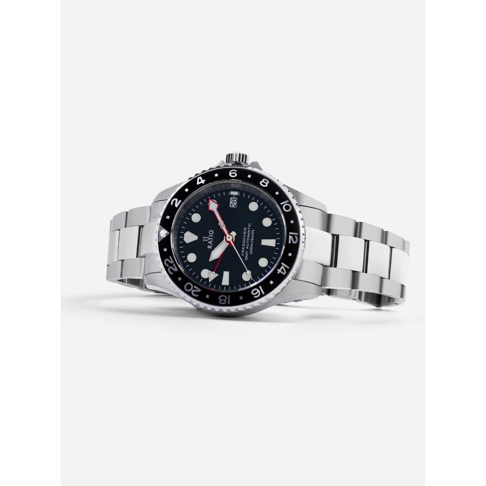 Ratio Freediver GMT Black Dial Silver Stainless Steel Strap Men's Watch RTF051