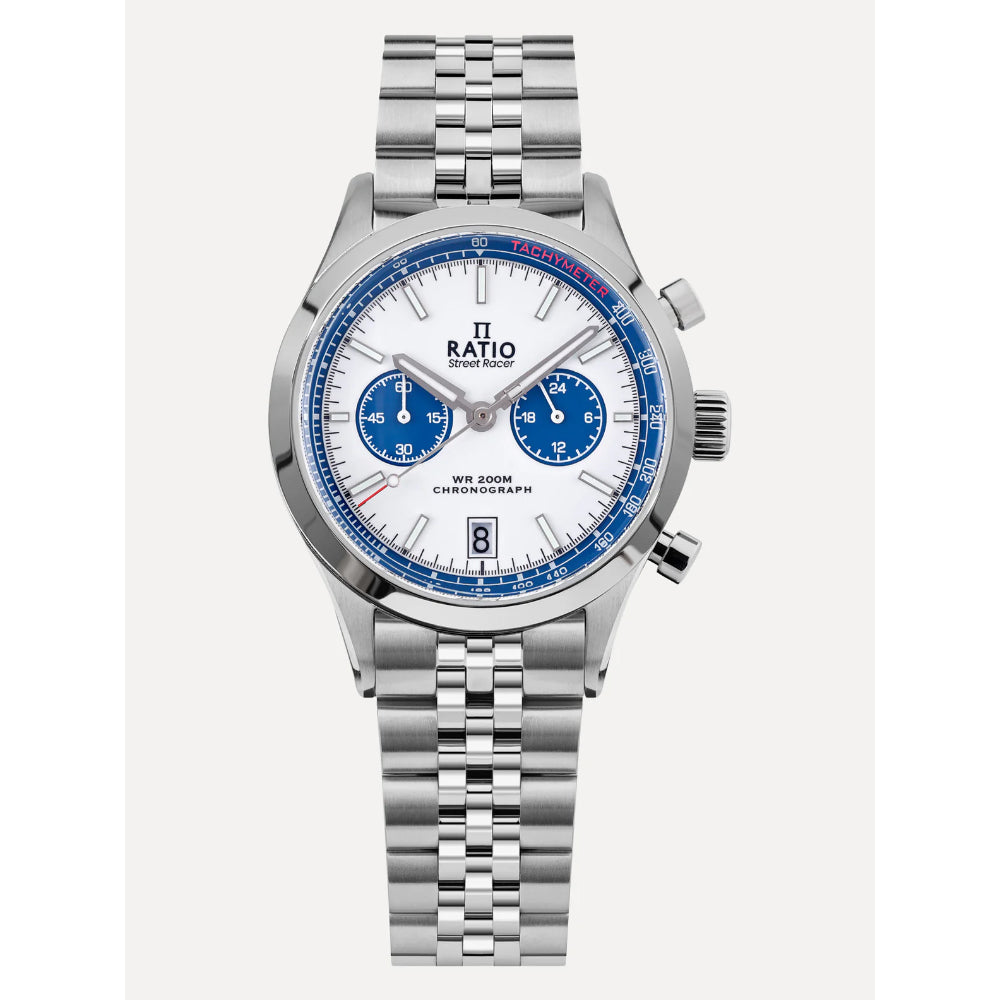 | Dial | White with Blue Subdials |