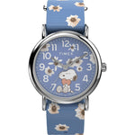 Bring the abundant beauty of nature to your look with our Timex Weekender x Peanuts collection. The pink slip-thru fabric strap is adorned with crisp floral graphics, while Snoopy stops and smells the flowers on the white dial. Complete with a silver-tone case and INDIGLO backlight, each is perfect for bringing a graceful touch to your everyday style. Plus, it perfectly complements our smaller 34mm Timex Color Rush x Peanuts watch, making it easy to coordinate an adorable look with your little one.