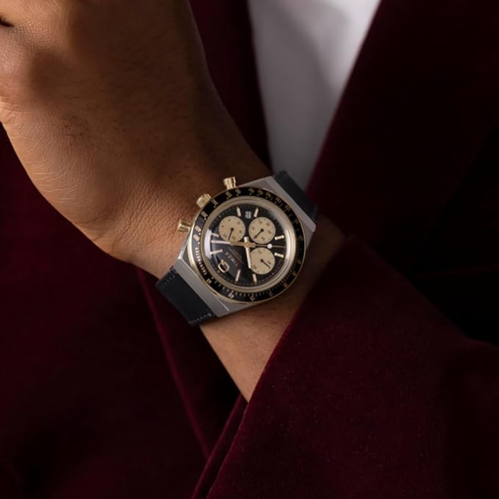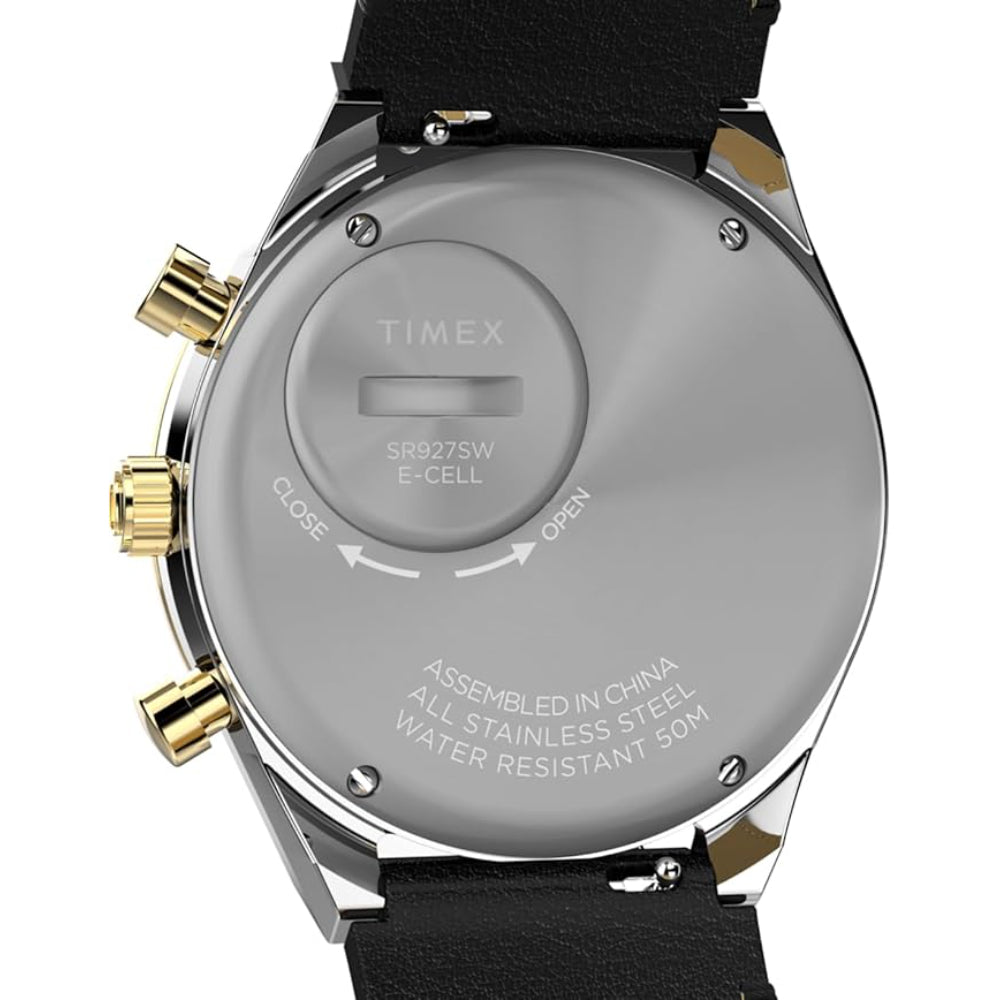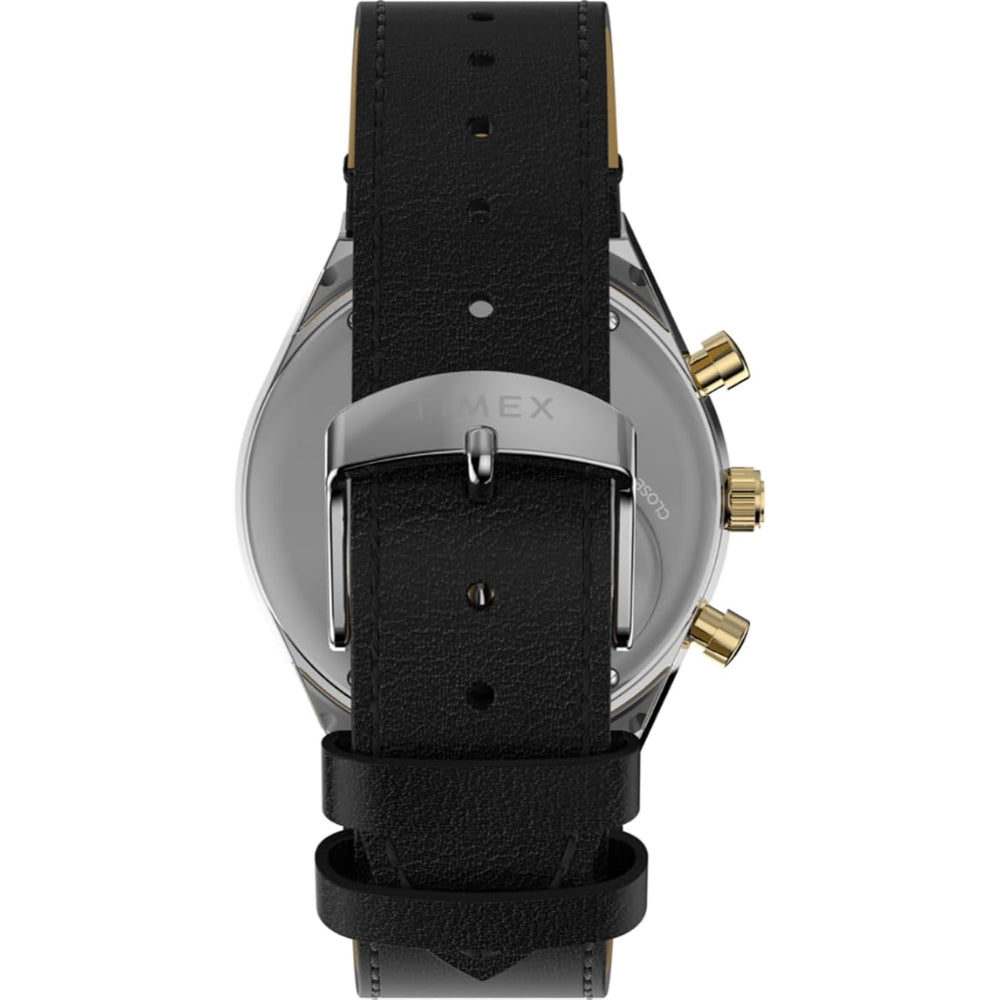 This Timex watch has a case made of stainless steel with a diameter of 40 mm and is fitted with a leather band. Inside the case lies a Timex movement and the watch features a Acrylic crystal.