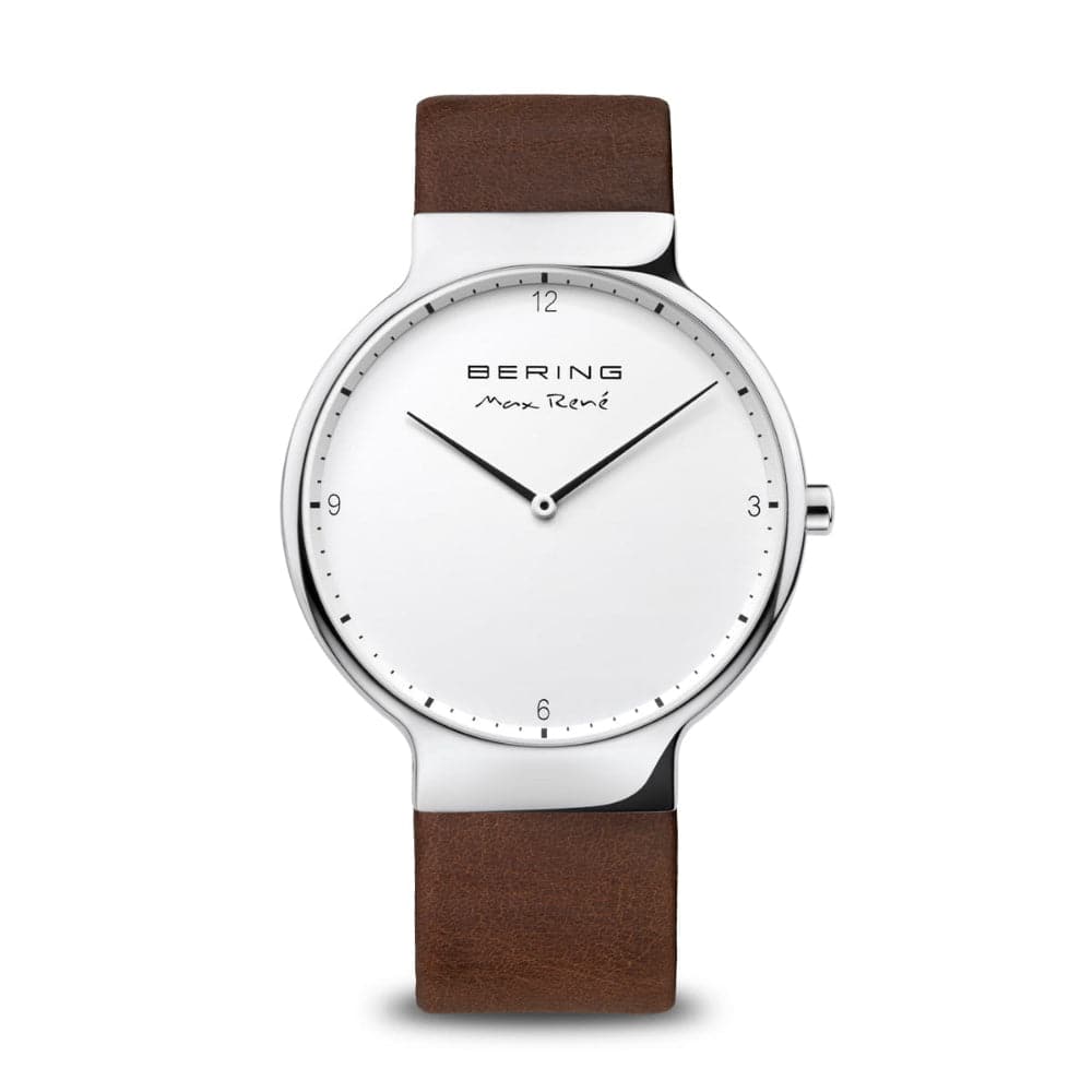 Bering Max Rene White Dial Brown Leather Strap Men Watch 15531-504