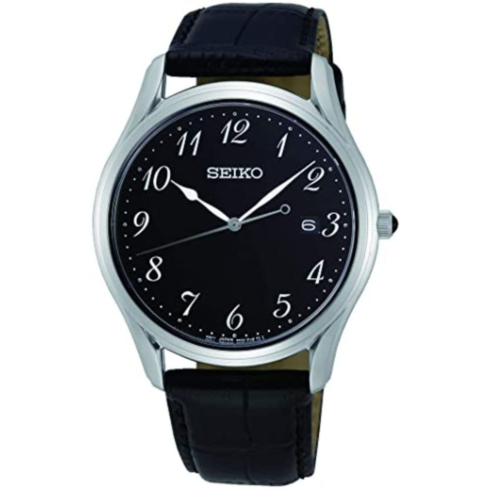 SEIKO GENERAL SUR305P1 NEO CLASSIC BLACK LEATHER MEN'S WATCH
