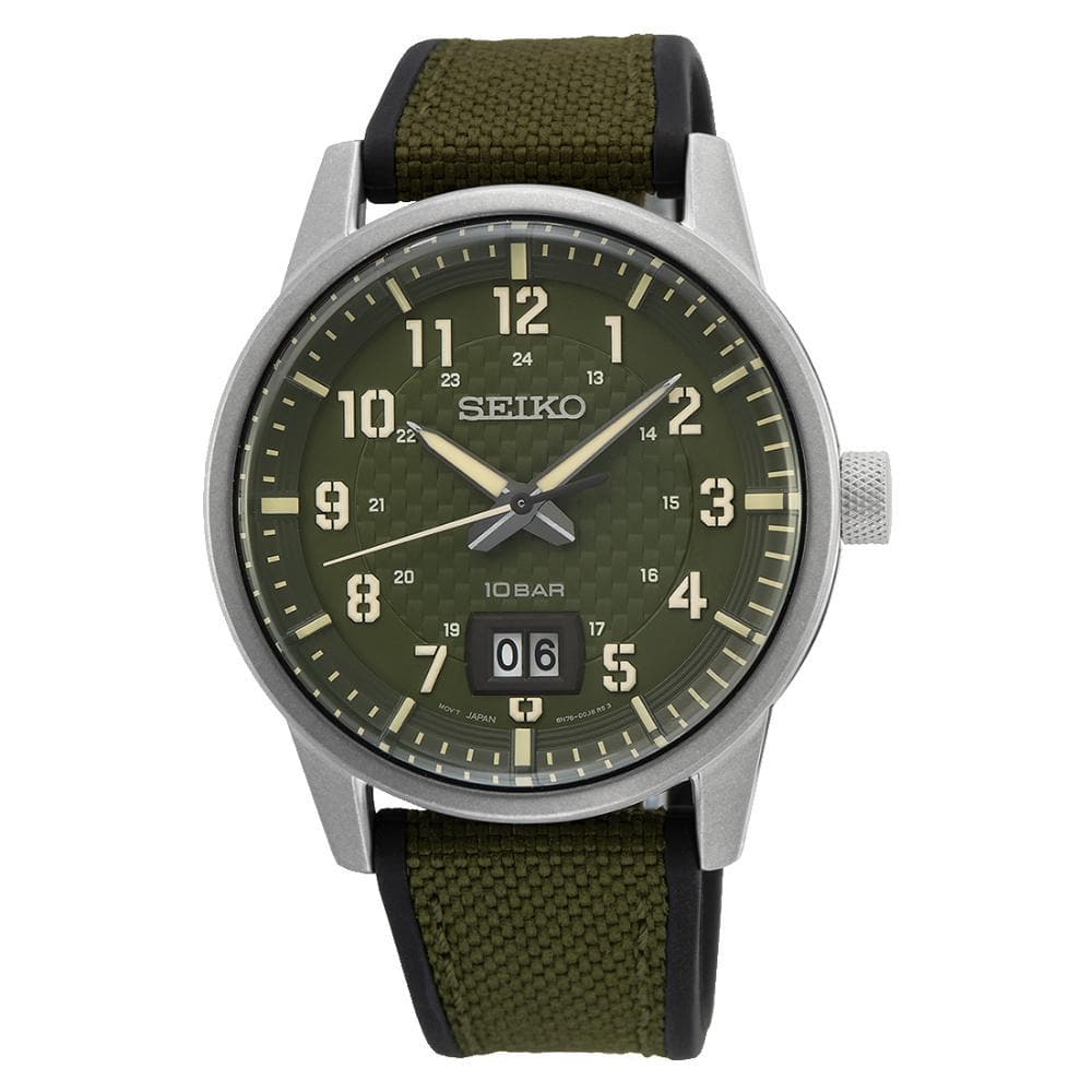 SEIKO GENERAL SUR323P1 NYLON GREEN STRAP MEN'S WATCH