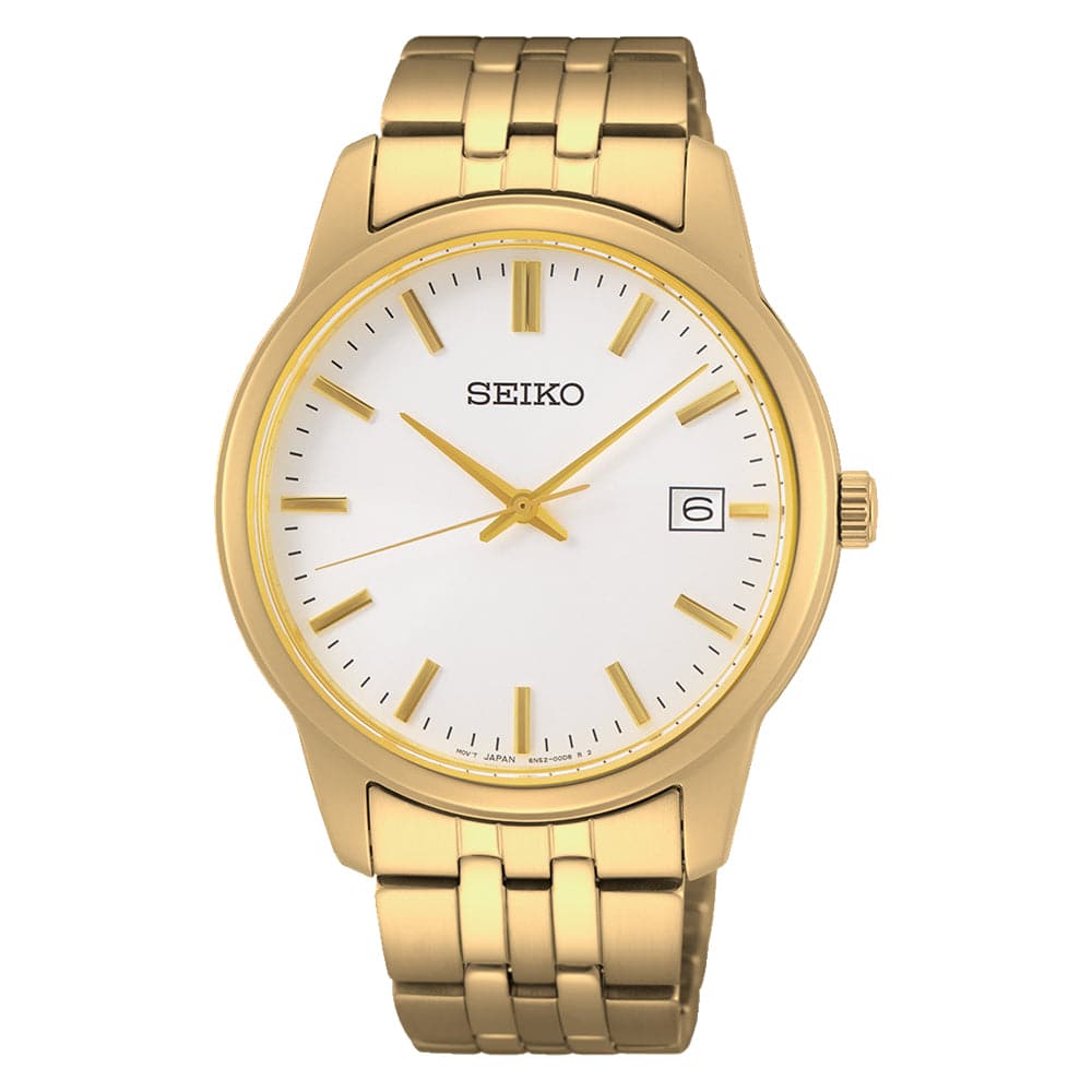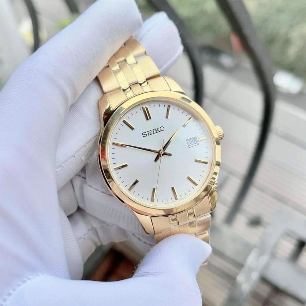Seiko White Dial Gold Stainless Steel Strap Men Watch SUR404P1