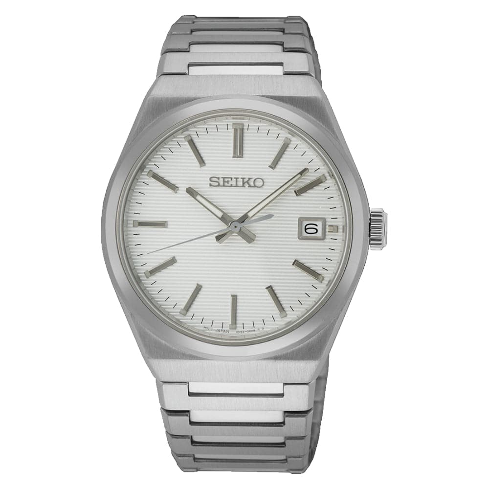 Seiko White Dial Silver Stainless Steel Strap Men Watch SUR553P1