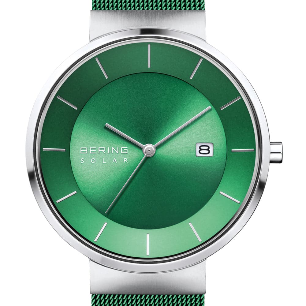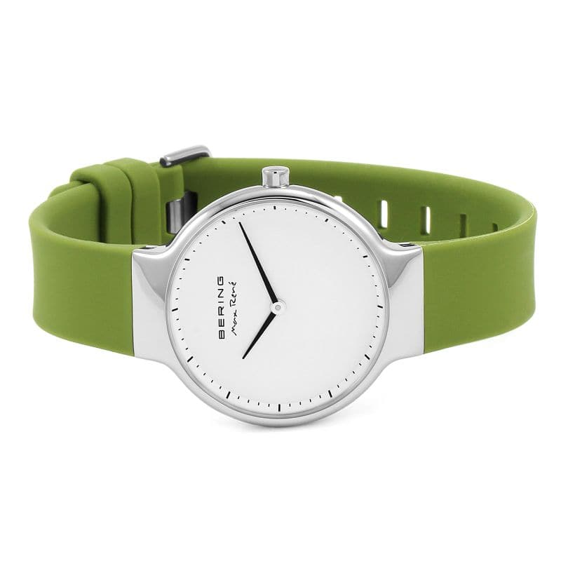 BERING 15531-800 MAX RENE POLISHED SILVER CASE & GREEN RUBBER STRAP WOMEN'S WATCH