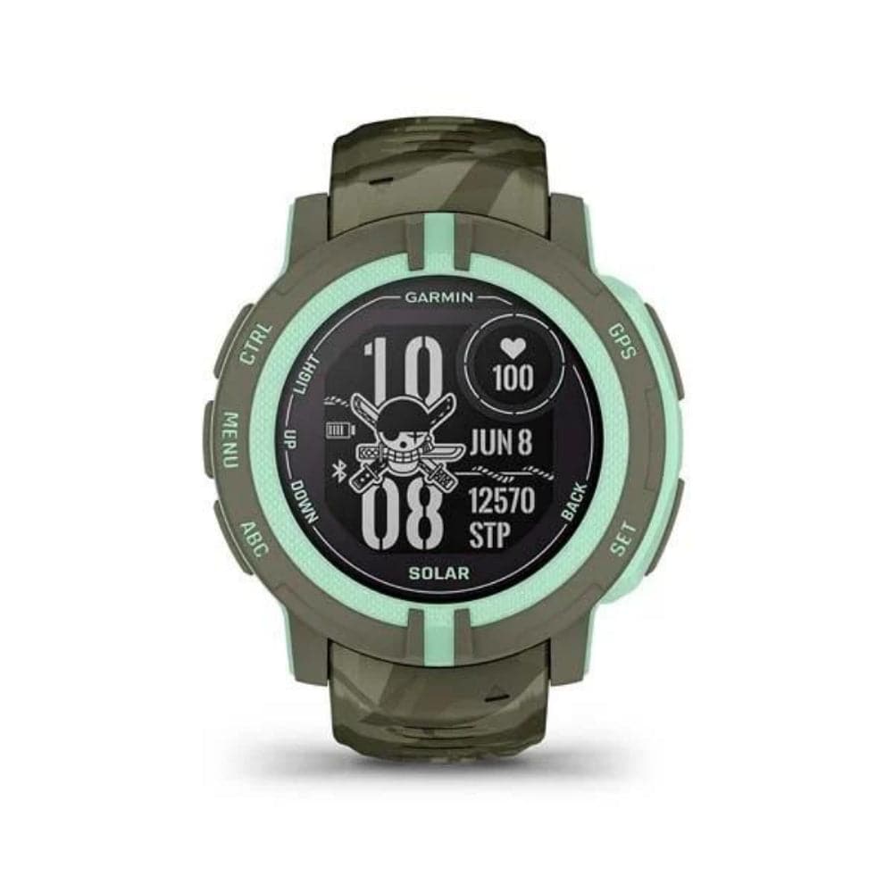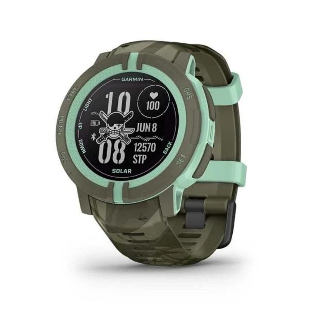 This rugged watch is water-rated to 100 meters and is thermal and shock resistant. Plus, with a fiber-reinforced polymer case and chemically strengthened, scratch-resistant Corning® Gorilla® Glass, this device is built to endure. 🏃🏻♂️ This pirate-black colorway has a buckle embellished with skull and crossbones details, and features red and yellow bezel and button accents that bring to mind classic scenes of Luffy’s optimism and courage. 🏃🏻♂️ Go longer than ever with solar charging with unlimited battery life in smartwatch mode1. Plus, power manager lets you extend battery life by controlling what settings and sensors draw power.