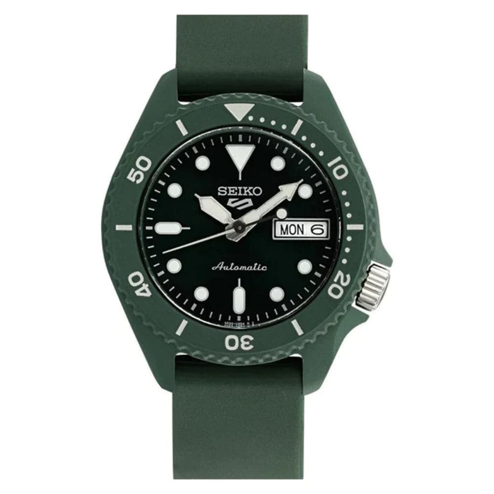 Seiko 5 Sports Automatic Black Dial And Green Silicone Strap Men Watch SRPG83K1