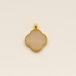 The Clover Grace Pendant is a timeless symbol of charm and serenity. Crafted with a delicate clover silhouette in soft beige stone, the pendant is framed in a radiant gold bezel with intricate beaded detailing. Its refined elegance makes it a versatile accessory, perfect for elevating both everyday looks and evening ensembles with a touch of sophistication.