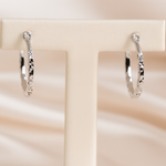 The Luminara Hoops celebrate timeless elegance with a modern edge. Crafted in sterling silver, each hoop features a delicately faceted surface that captures and reflects the light with every movement, creating a dazzling shimmer that enhances any look. Their sleek profile strikes the perfect balance between sophistication and everyday wearability.