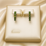 Embodying the lush beauty of nature, the Verdant Radiance Hoops feature a row of vivid green gemstones set in polished silver. Each stone reflects light with a fresh brilliance, creating an elegant yet contemporary design perfect for both everyday wear and special occasions.