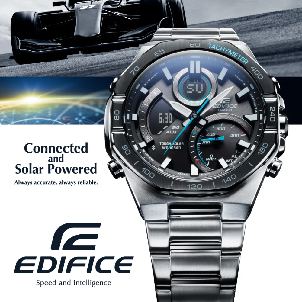 Get smartphone connectivity and so much more in an analog-digital combination EDIFICE timepiece, made to project speed and intelligence.