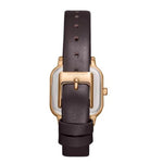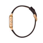 Square Super Metal Rose Gold Case With Analog Display, Black Dial 26X33 mm Case Diameter, 2035 Movement, 3 ATM Water Resistant Dark Brown Leather Bracelet With Tang Buckle.