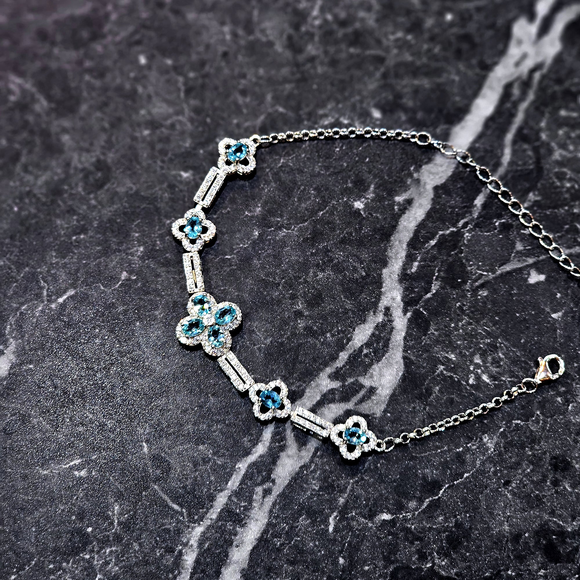 Crafted in polished silver, this bracelet flows like a jeweled garland along the wrist, offering both fluidity and form. The cool azure tones evoke a sense of calm, clarity, and charm — perfect for elevating everyday ensembles or completing a refined evening look.