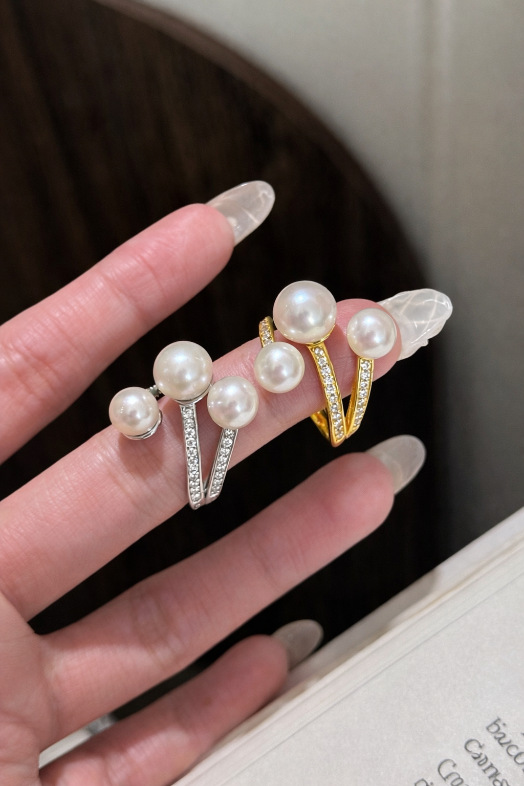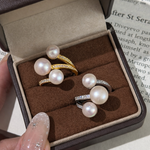 The Luna Pearl Embrace Ring is designed around the idea that true elegance never demands attention — it draws it naturally. Featuring luminous pearls gently held by pavé-accented arms, this piece captures the balance between softness and structure, grace and intention.