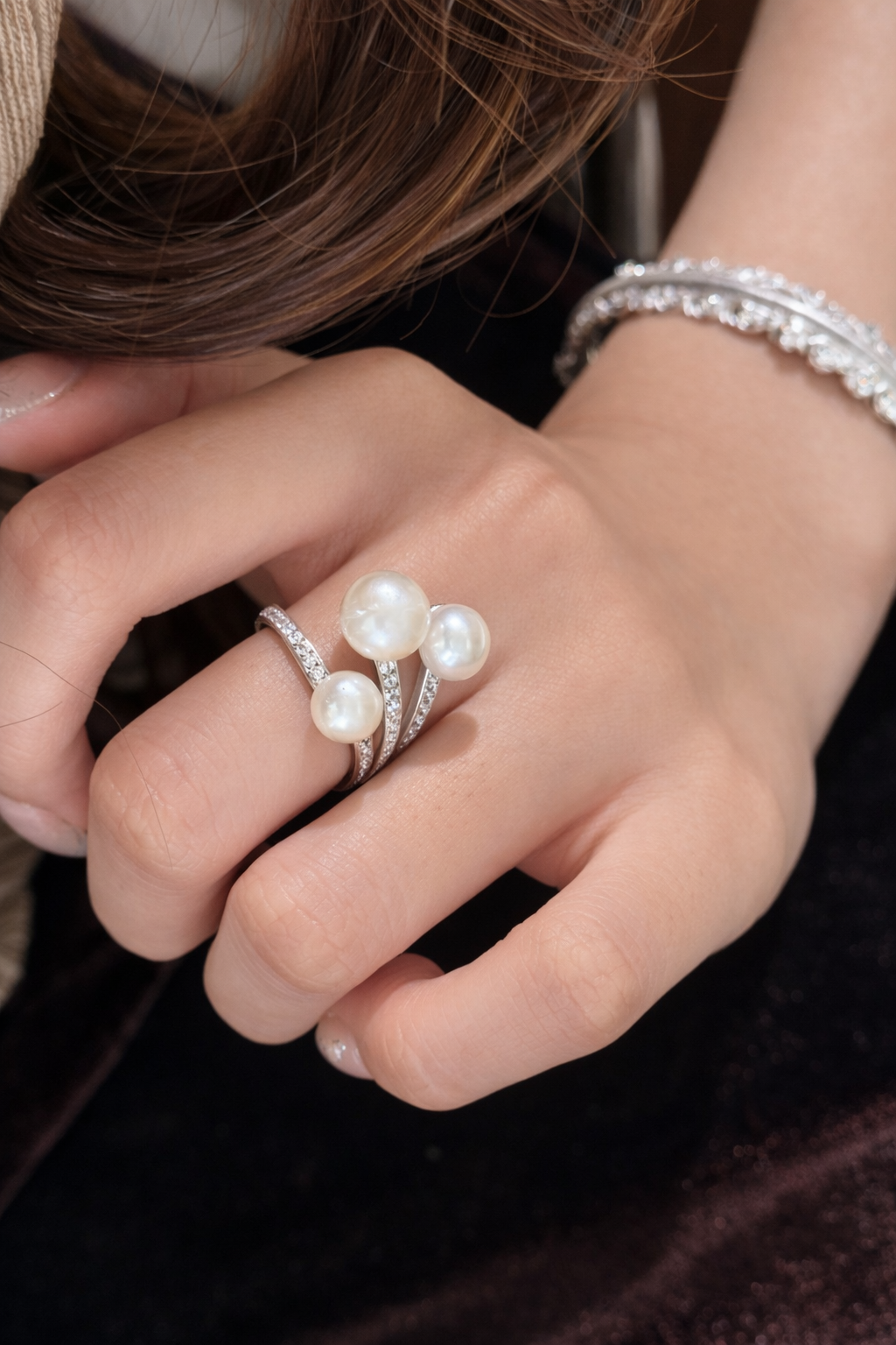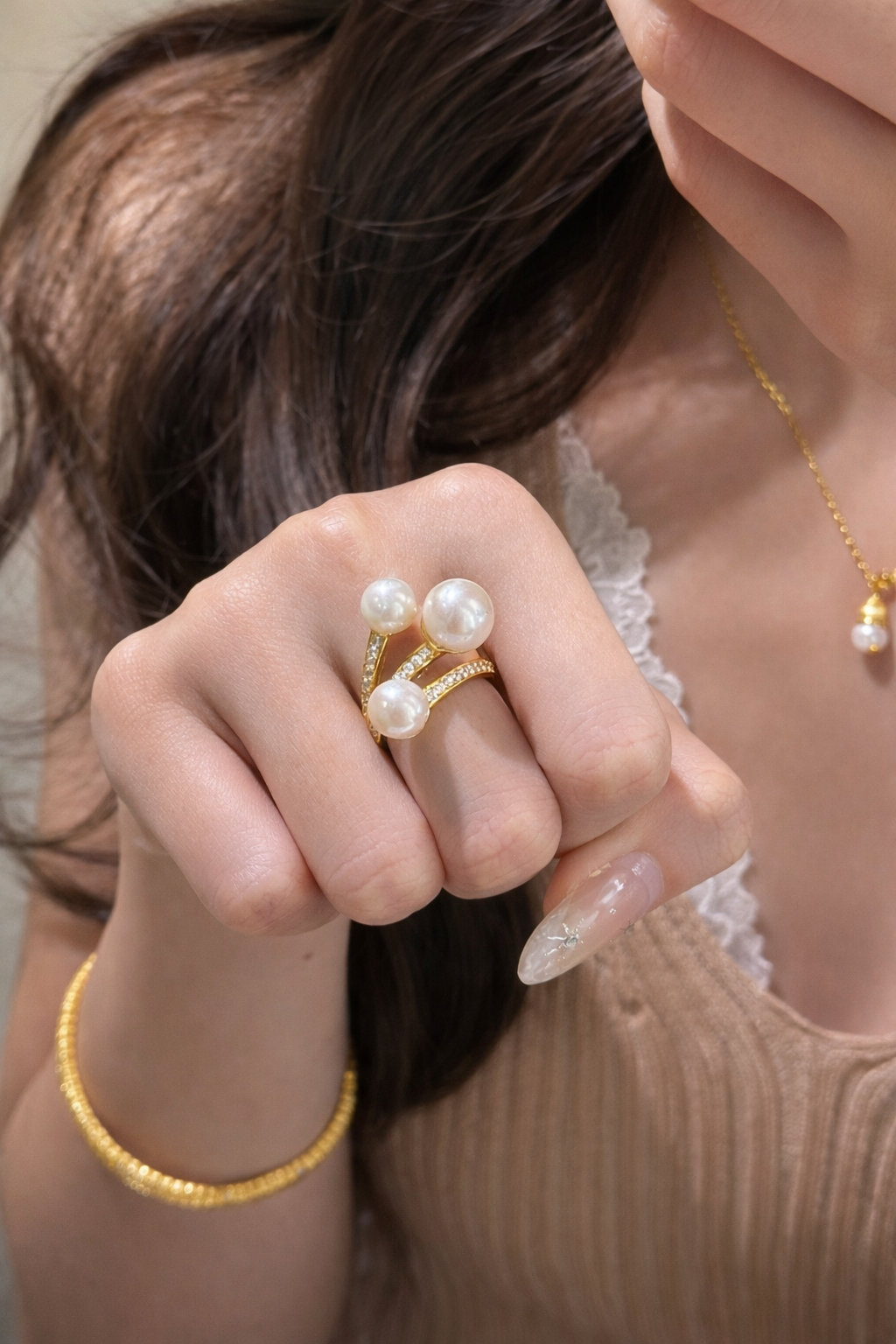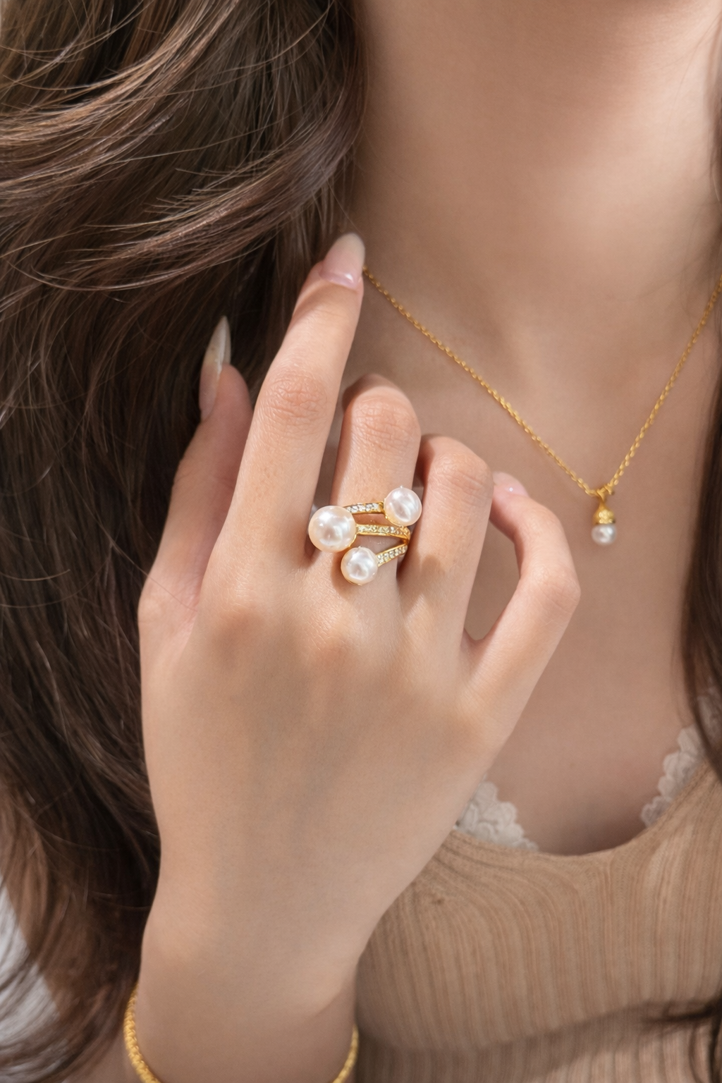 The Luna Pearl Embrace Ring is for those who move gently through the world — yet remain unmistakably strong.