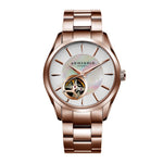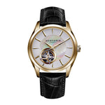 A staple of every collection, the 3-handed dress watch is a must have for any collector, or anyone. Telling nothing but the time, with a dial finished with a mother of pearl center dial, surrounded by a circular graining along its edge, and of course, the open heart showcasing the movement proudly. The Inspira is in every way, a modern and versatile dress watch for the modern woman.