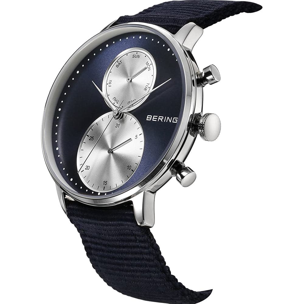 Sporty Bering watch 13242-507 with a cool and straight designed look. The dial shows: Date, Minute, Second, Hour, Day. Nice and strong Textile-bracelet. Water Resistance: 3 ATM for everyday use. Perfect case diameter of 42 mm. A scratch prove anti-reflecting, Sapphire glass protects your watch from unintentionally accidents. These are the colors of your new 13242-507: Dial: Blue, Bracelet: Blue, Case: Silver. Allow yourself to order your new dream watch from Bering now!