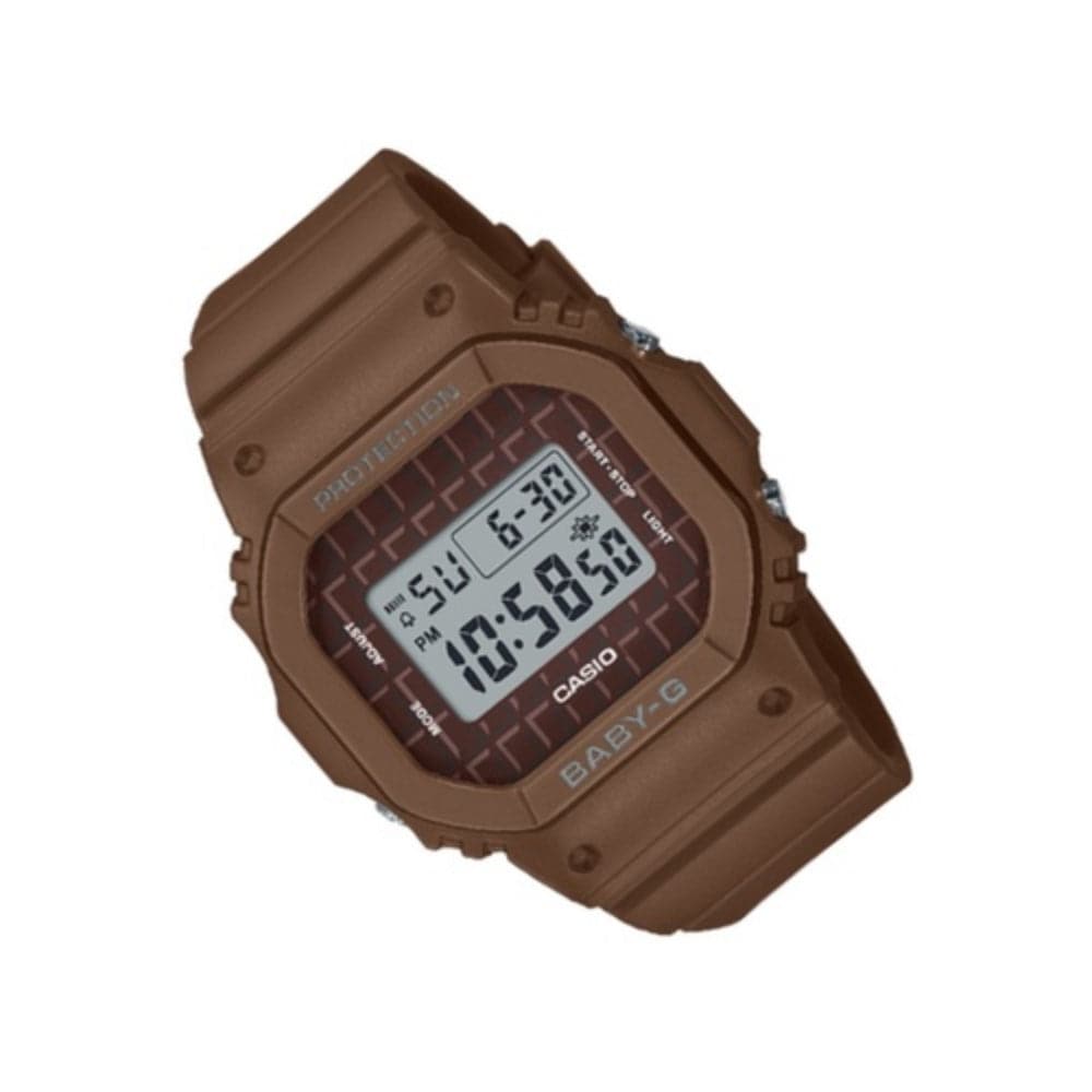 Treat yourself to chocolatey goodness with a BABY-G watch inspired by your favorite chocolate. Nothing says rich milk chocolate like a light brown color scheme and a dial printed in a chocolate-bar block pattern. Not just delicious, but practical, too — with shock-resistant construction and 100-meter water resistance.