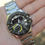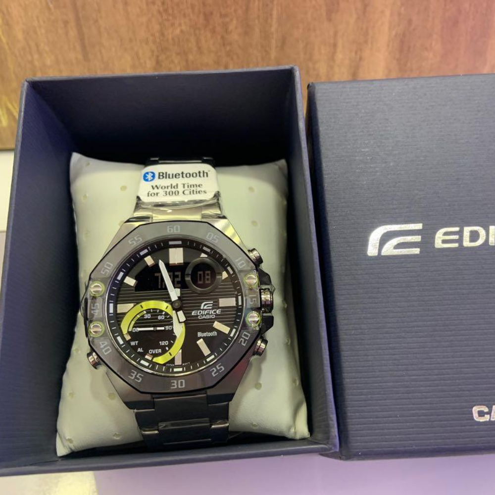 As long as the watch is close to a smartphone, it can link to the dedicated "CASIO WATCHES" app through Smartphone Link via Bluetooth®, and connect without button operations to correct the time. The schedule timer, which was developed based on feedback from the F1 team, uses the watch to notify wearers when events scheduled on smartphones will begin and end. The watch is equipped with an LED light that lights up with a simple tilt of the wrist. The bezel has a black ion plate finish that resists scratching.