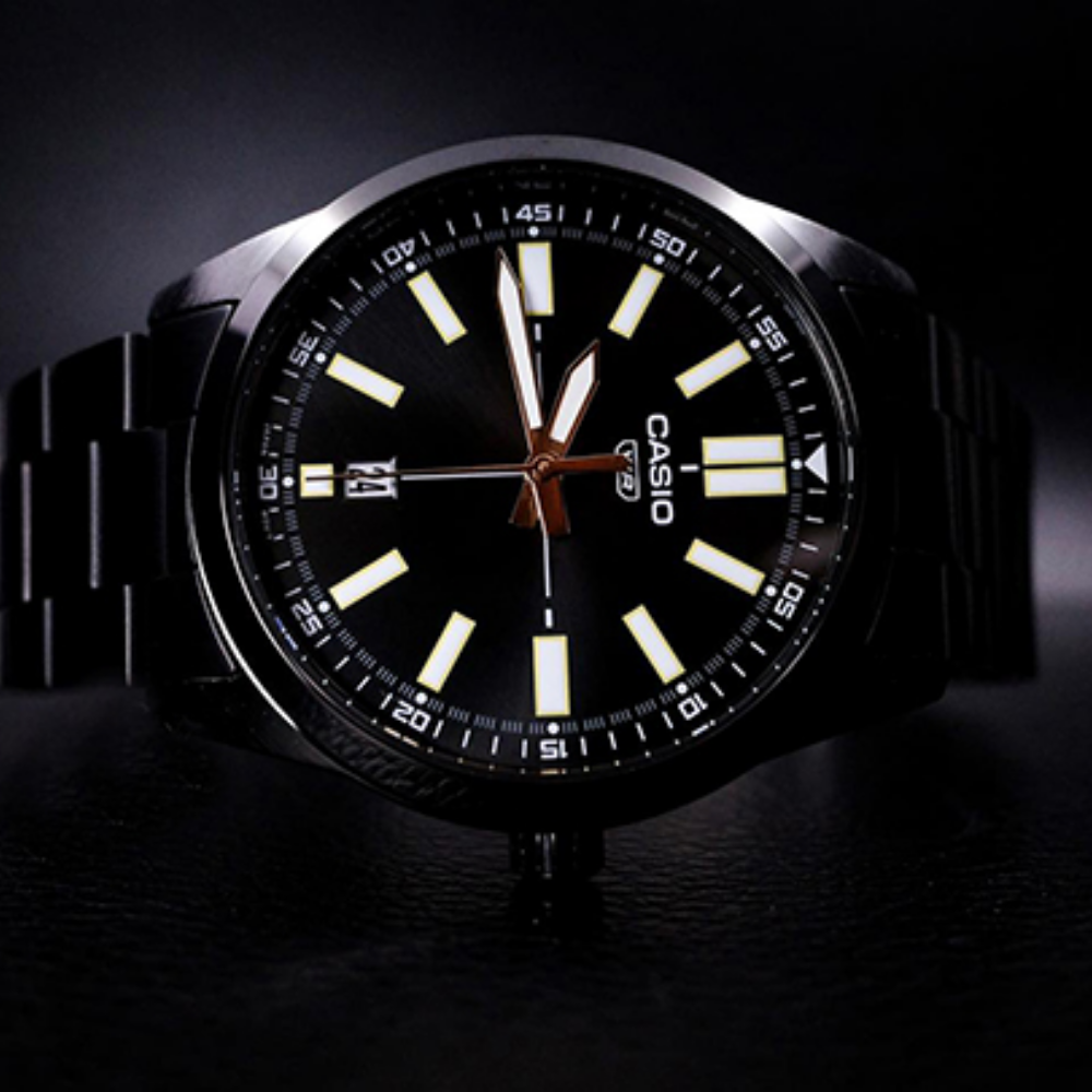 The minimalist analog design features a handy date display at the 6 o'clock position. Water resistance for daily use frees you from worry when washing up or out in the rain.