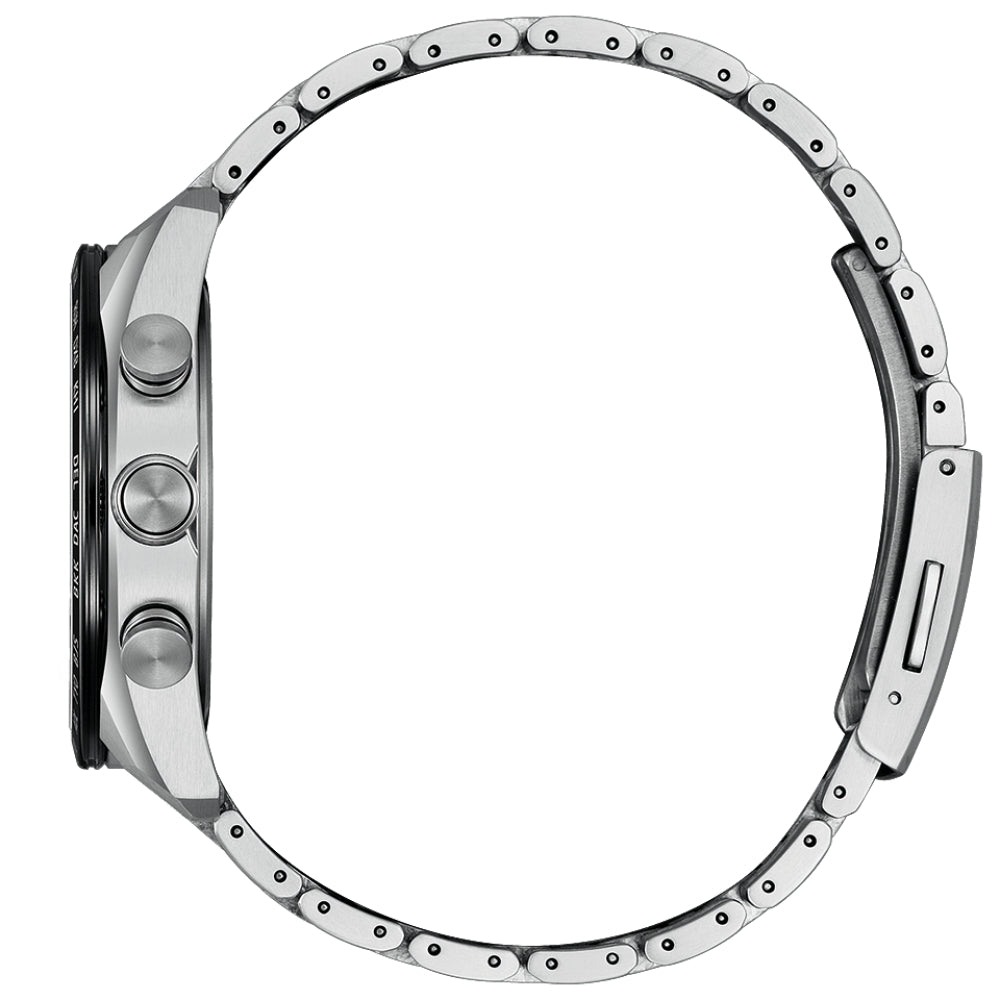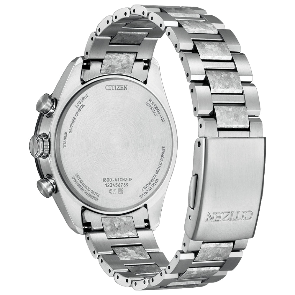 Citizen Attesa ACT Line Platinum Shine Collection Limited Edition AT8284-61A - men's watch produced by Citizen. It has Japanese solar quartz movement and H800 calibre. Super titanium, duratect treatment, duratect dlc case of round shape. Case dimensions are 42 mm. in diameter and 10.8 mm. in thickness. The dial of this Citizen watch is gray. Display type: analog. This timepiece has sapphire, clarity coating glass. Super titanium band, band color: silver. 100 m. water resistance. The watch is from Attesa collection. The following features are equipped: radio controlled, antimagnetic, glowing hands, glowing markers, power reserve indicator, perpetual calendar, date, day, chronograph, world time, limited edition.