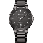A refined men's timepiece featuring a 40 mm stainless steel case and bracelet with a black dial. The watch is powered by a reliable quartz movement and offers practical features like date display. Perfect for daily wear with its water resistance of up to 50 meters.