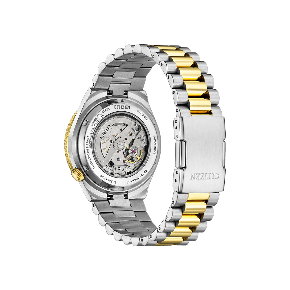 Introducing the Citizen Tsuyosa NJ0234-58X, a sophisticated timepiece designed for the modern man. This two-tone stainless steel watch blends silver and gold tones for a refined aesthetic that works across any occasion. The practical date display keeps important dates within easy view, while the durable stainless steel bracelet withstands the demands of daily life.