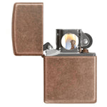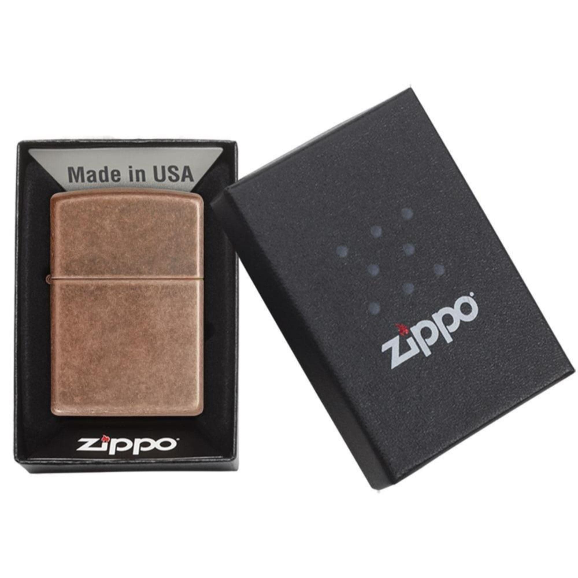 | This ANTIQUE COPPER ZIPPO LIGHTER #301FB is adorned with the classic Zippo logo. Comes packaged in a gift box. For optimal performance, fill with Zippo lighter fuel. Genuine Zippo windproof lighter with distinctive Zippo. All metal construction; windproof design works virtually anywhere Refillable for a lifetime of use; For optimum performance, we recommend genuine Zippo premium lighter fluid, flints, and wicks. Made in USA; Lifetime guarantee that "it works or we fix it free™" Fuel: Zippo lighter fuel (sold separately) |