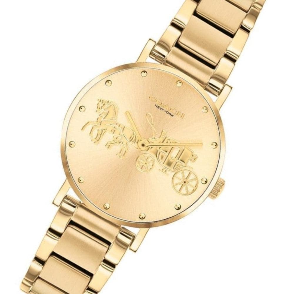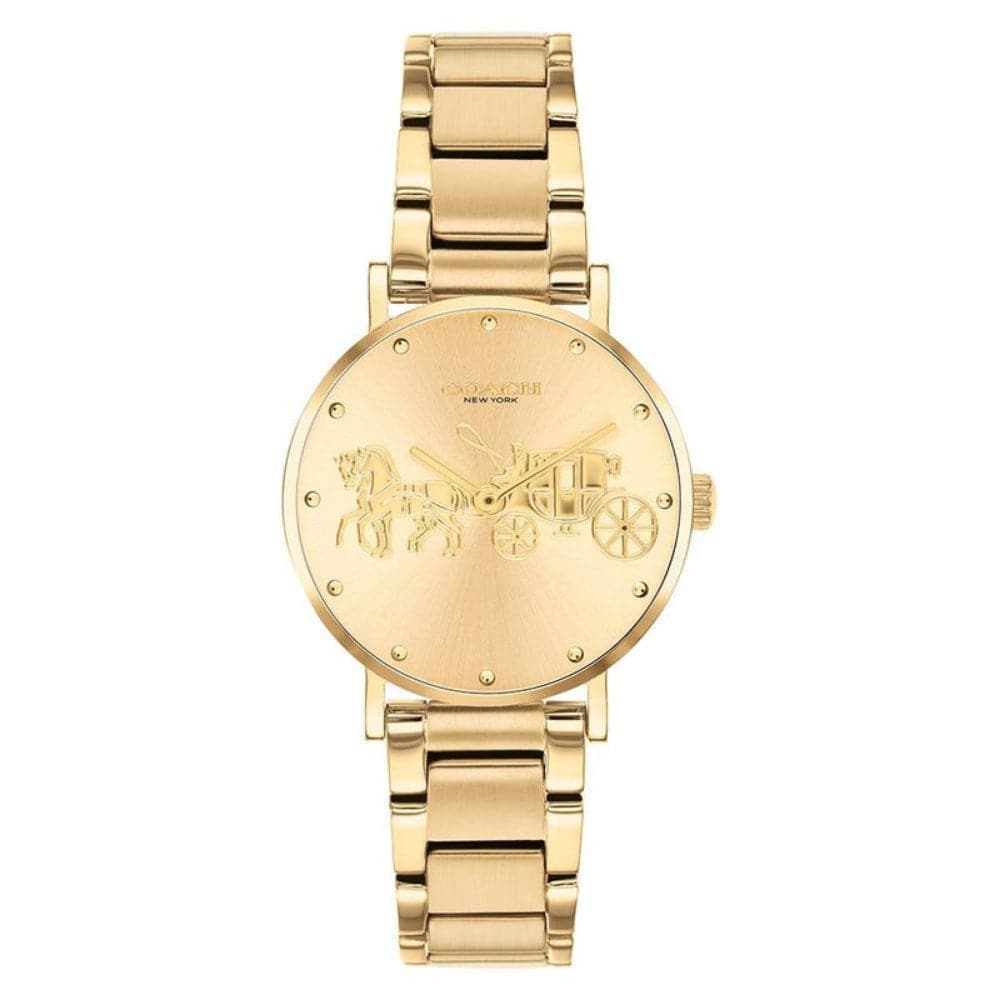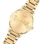 Named for the glamorous New York City street, the Park watch from COACH is an elegant style perfect for day or night. This polished gift set shimmers with crystals and includes one sleek stainless steel bracelet timepiece and a delicate pave bar slider bracelet. The bracelet adjusts to fit most wrists. Wear together or separately.