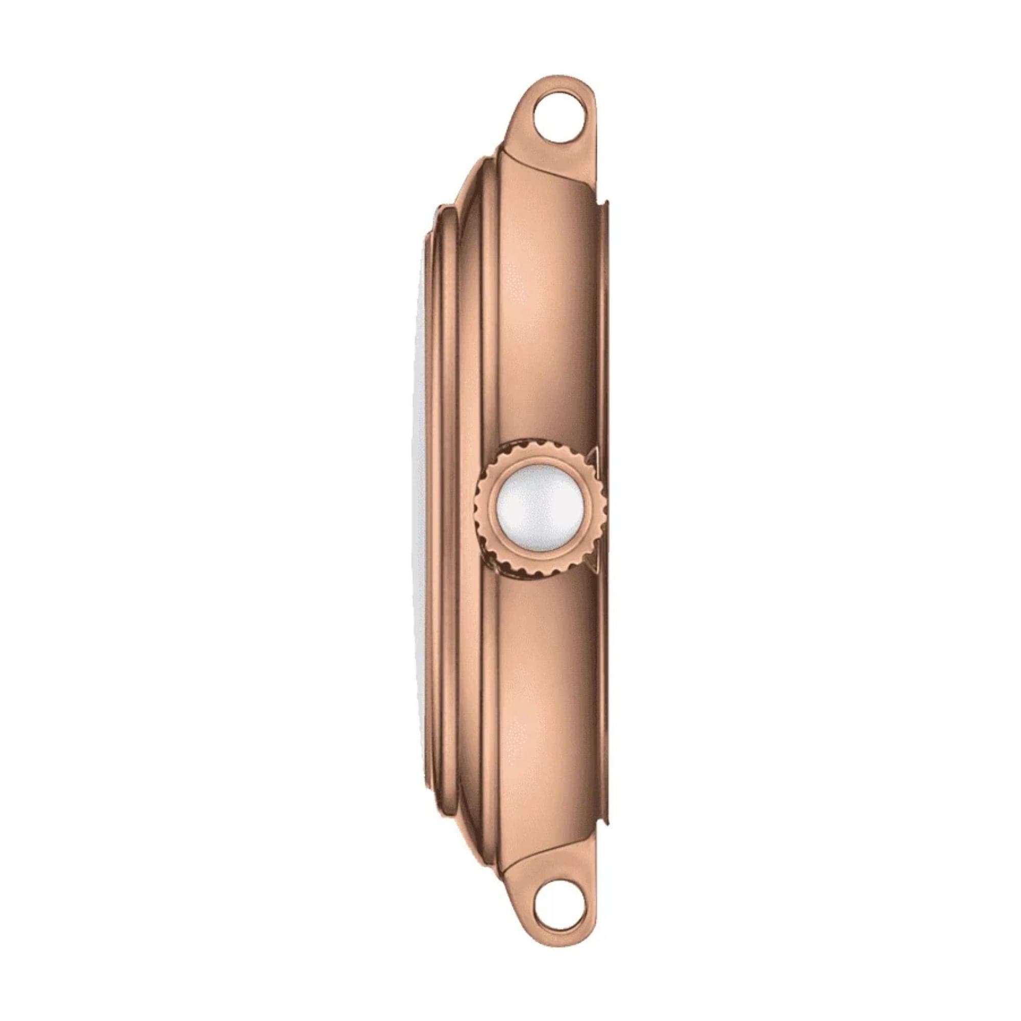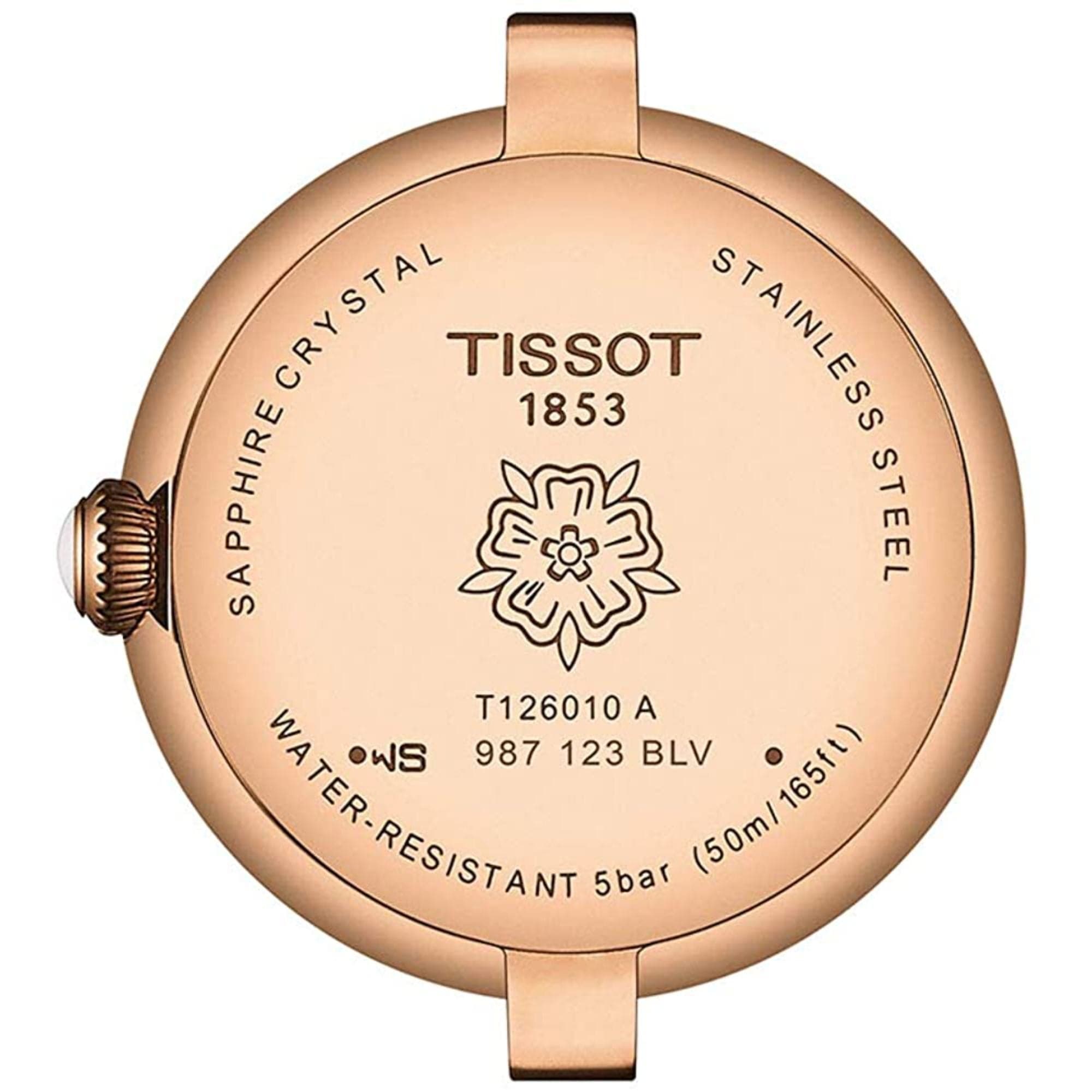 The Tissot Bellissima Small Lady is a delicate and romantic watch that was designed for special moments and occasions. A women's Swiss-made quartz watch with domed scratch-resistant sapphire crystal and white dial with Roman numeral indices.