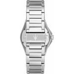 This Maserati watch has a case made of stainless steel with a diameter of 41 mm and is fitted with a stainless steel band. Inside the case lies a Miyota movement and the watch features a Sapphire coated mineral crystal.
