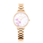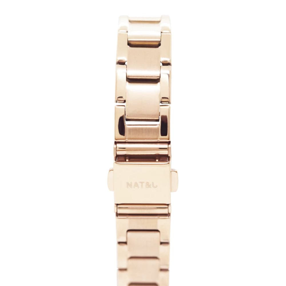 The NATbyJ Dream timepiece is to inspire every woman to dream BIG. Let your dream be beautifully woven like the distinctive embroidery design, using rose gold thread on a delicate cream leather dial. Complete the look by pairing the rose gold-plated stainless steel case with a rose gold-plated link bracelet that fits perfectly on a dainty wrist.