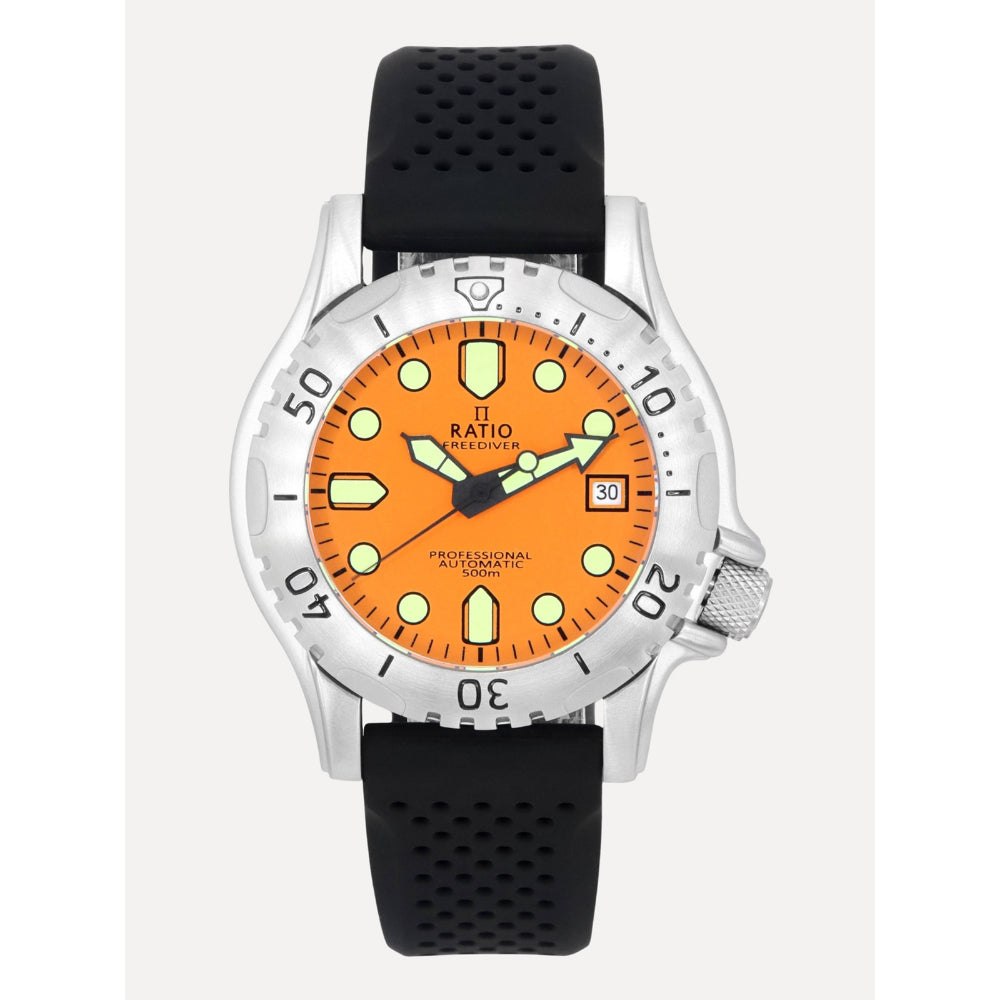 Dive in style with the FreeDiver Automatic RTF 500M, a watch that pairs the functionality of a dive watch with a sleek, everyday design. It features a 500-meter water resistance, and the MIYOTA 8215 movement ensures reliability where it counts. With a vibrant orange dial, it’s a top pick for those who value great underwater experiences.